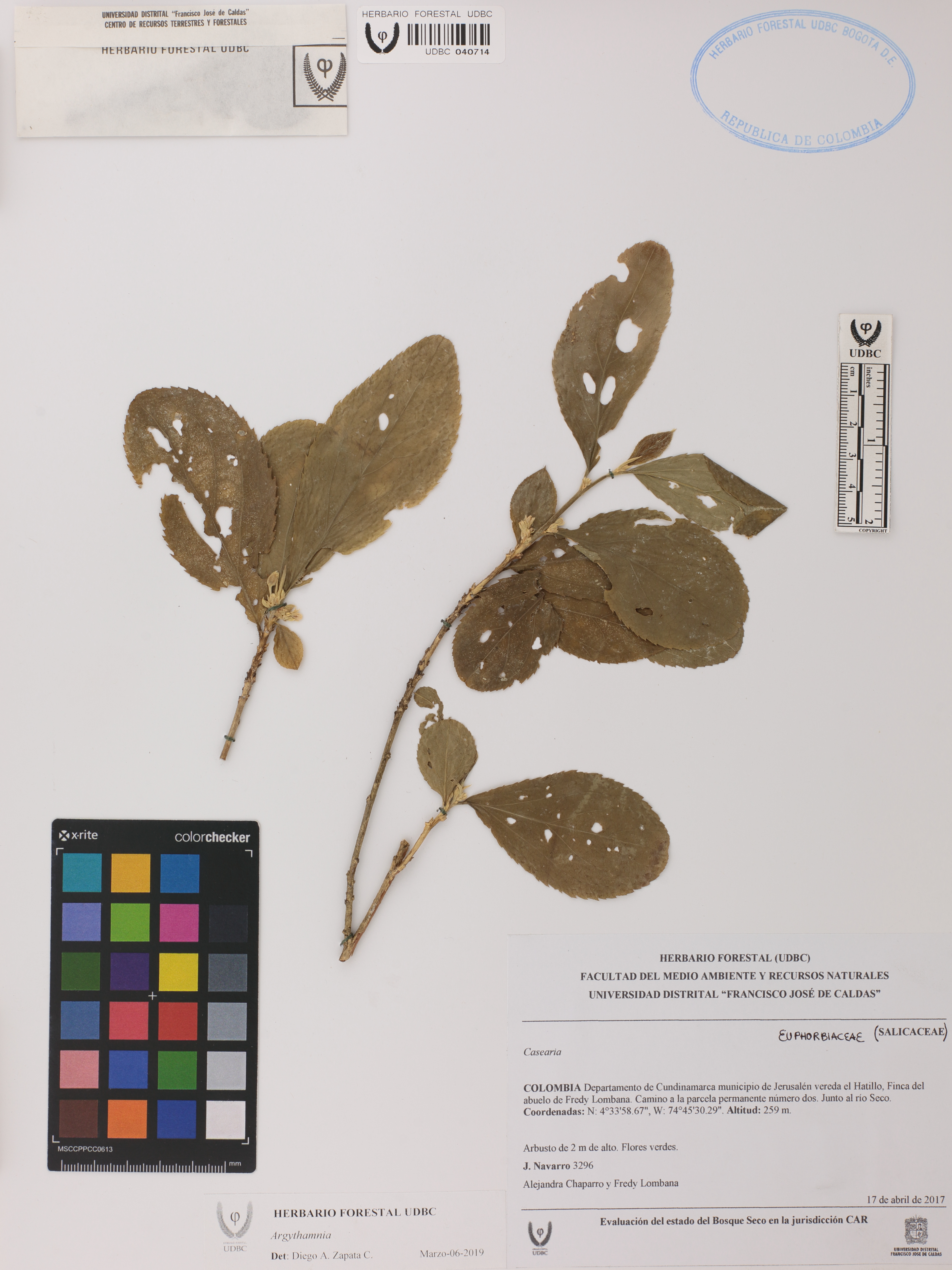 | dc.description | Fotografía del ejemplar Navarro, J. 3296, determinado como Argythamnia sp. en el año 2019 | |