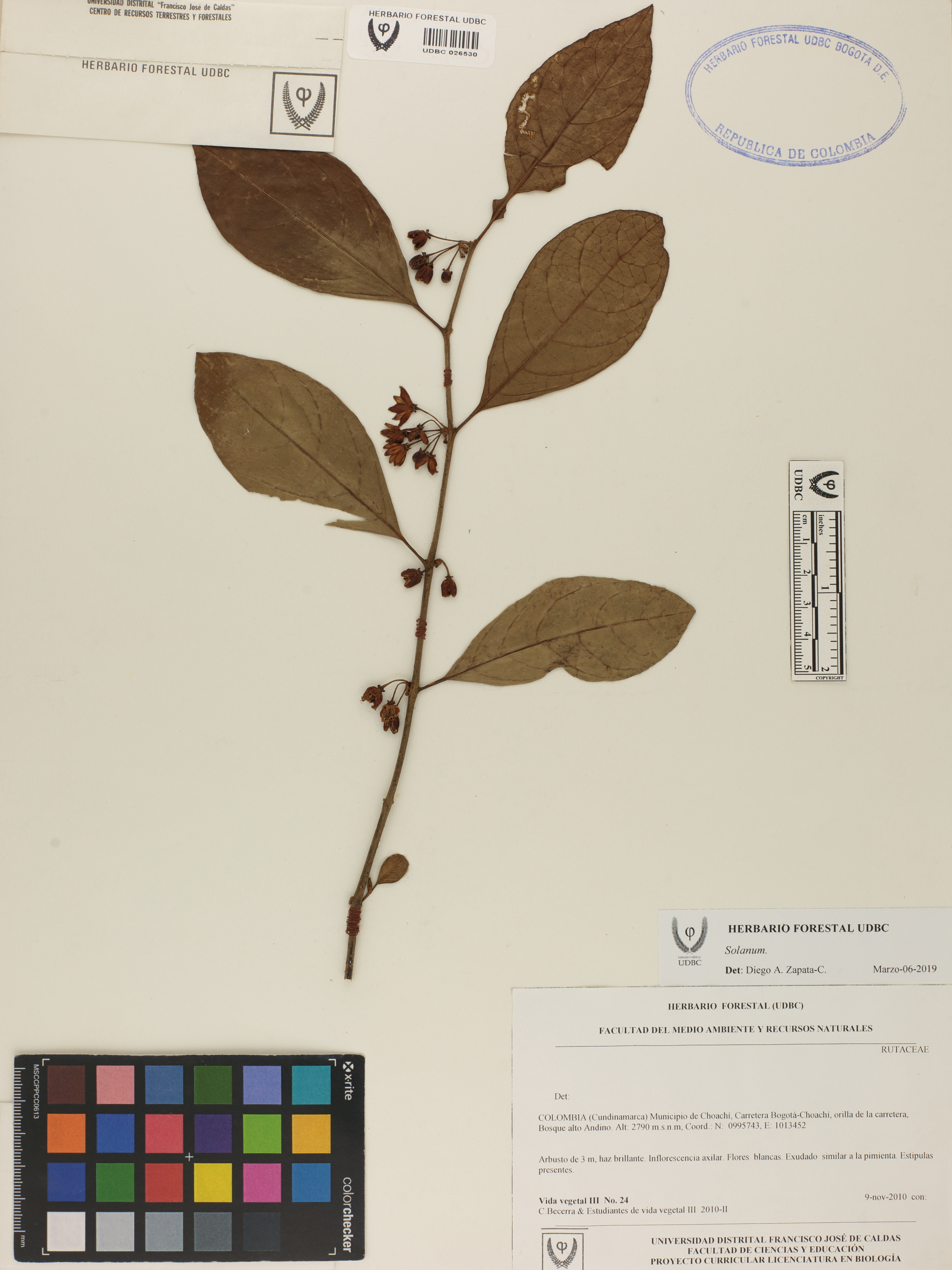 Fotografía del ejemplar Becerra, C. 24, determinado como Solanum sp. en el año 2019