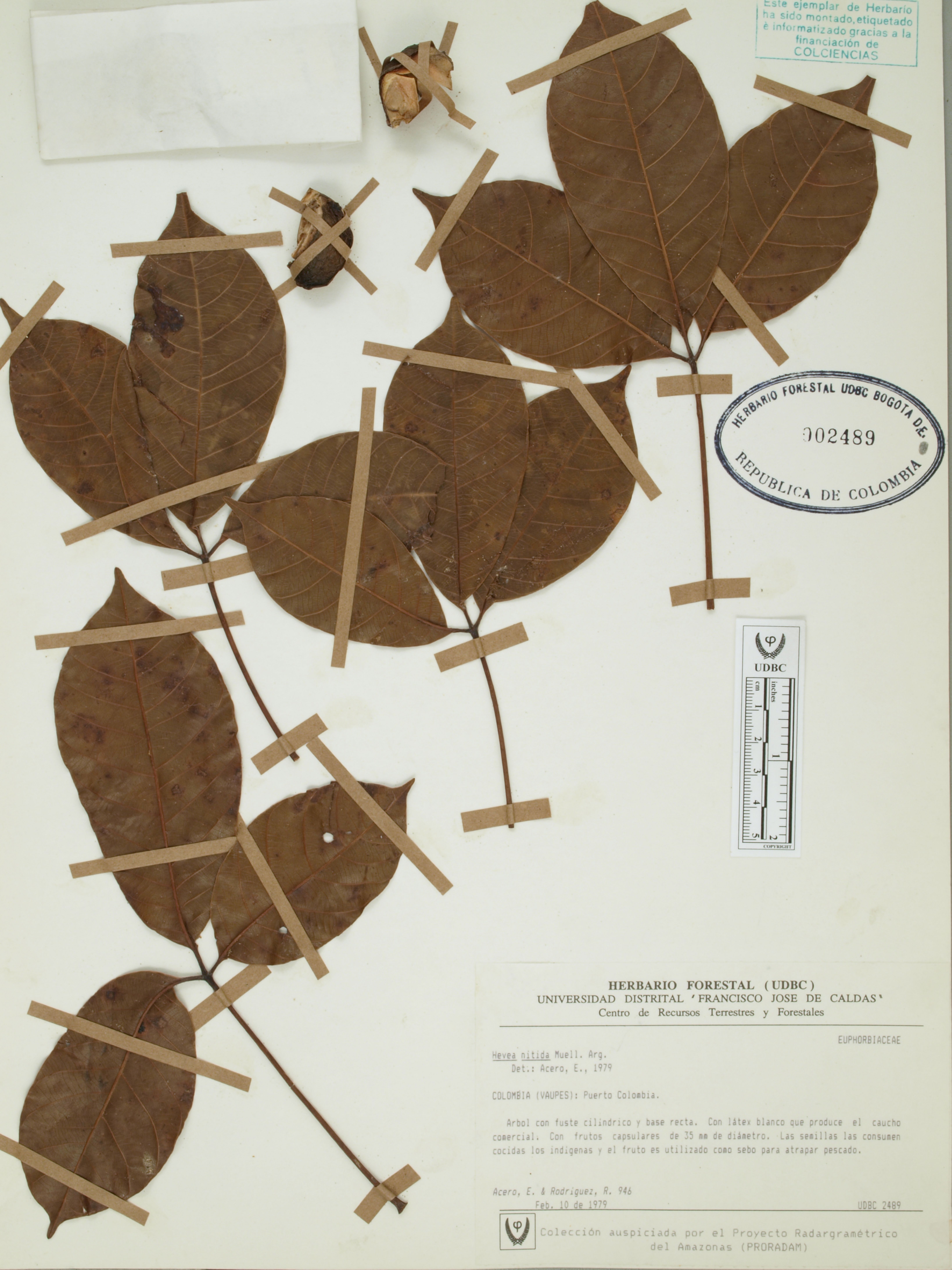 | dc.description | Fotografía del ejemplar Roa, A. 946, determinado como Hevea nitida en el año 1979 | |