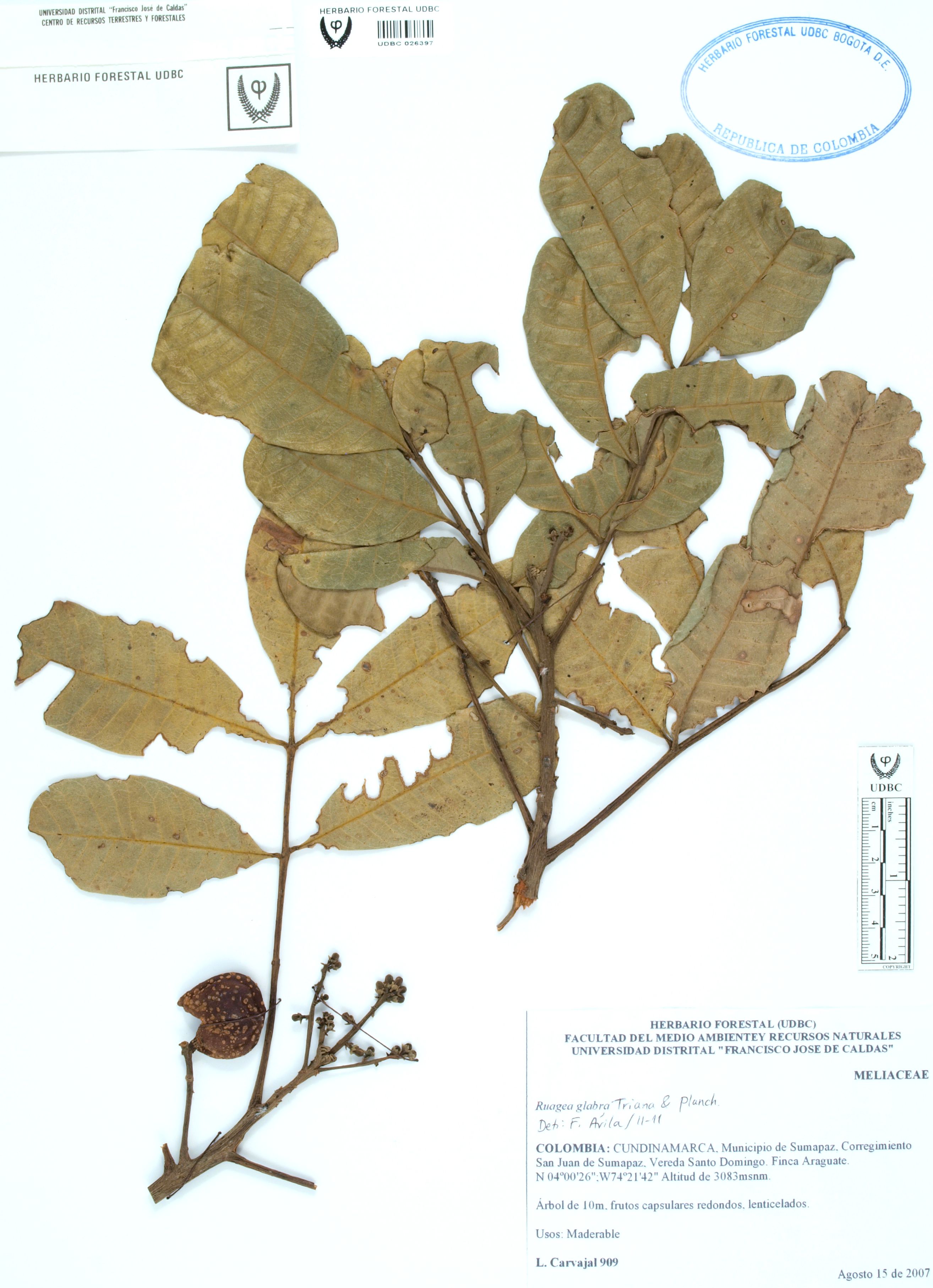 | dc.description | Fotografía del ejemplar Carvajal, L. 909, determinado como Ruagea glabra en el año 2011 | |