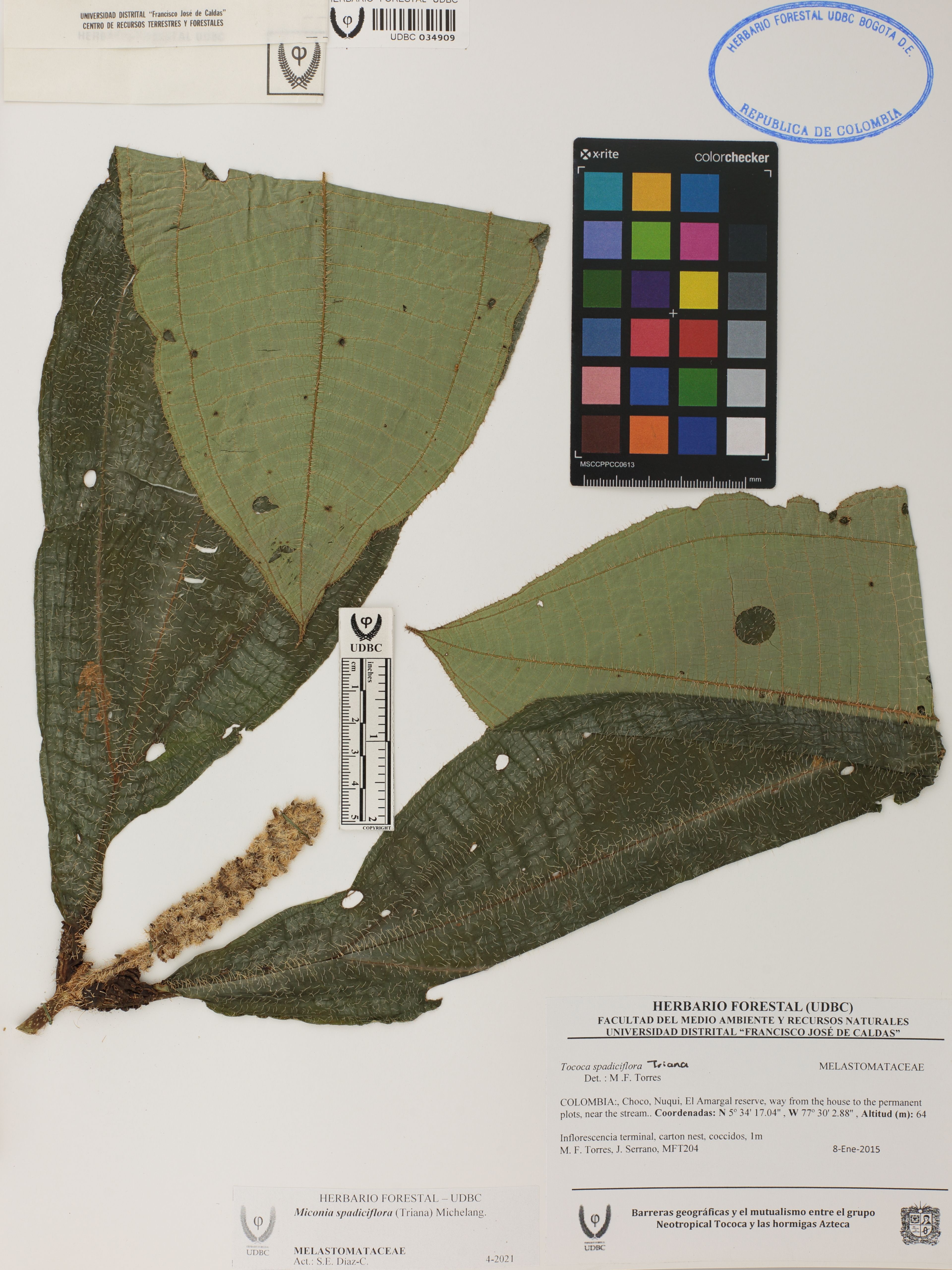 | dc.description | Fotografía del ejemplar Torres, M. 204, determinado como Miconia spadiciflora en el año 2016 | |