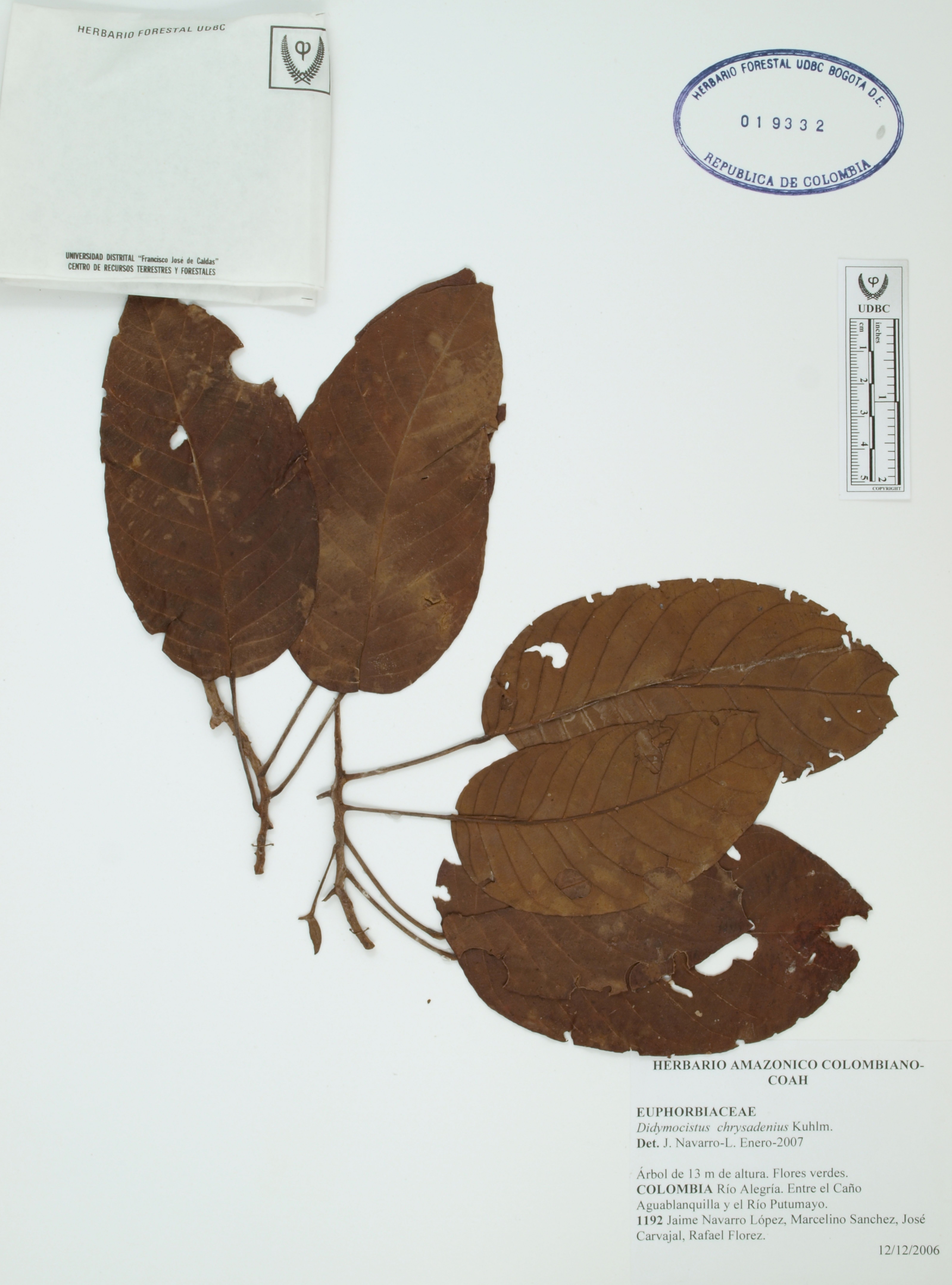 Fotografía del ejemplar Navarro, J. 1192, determinado como Didymocistus chrysadenius en el año 2007