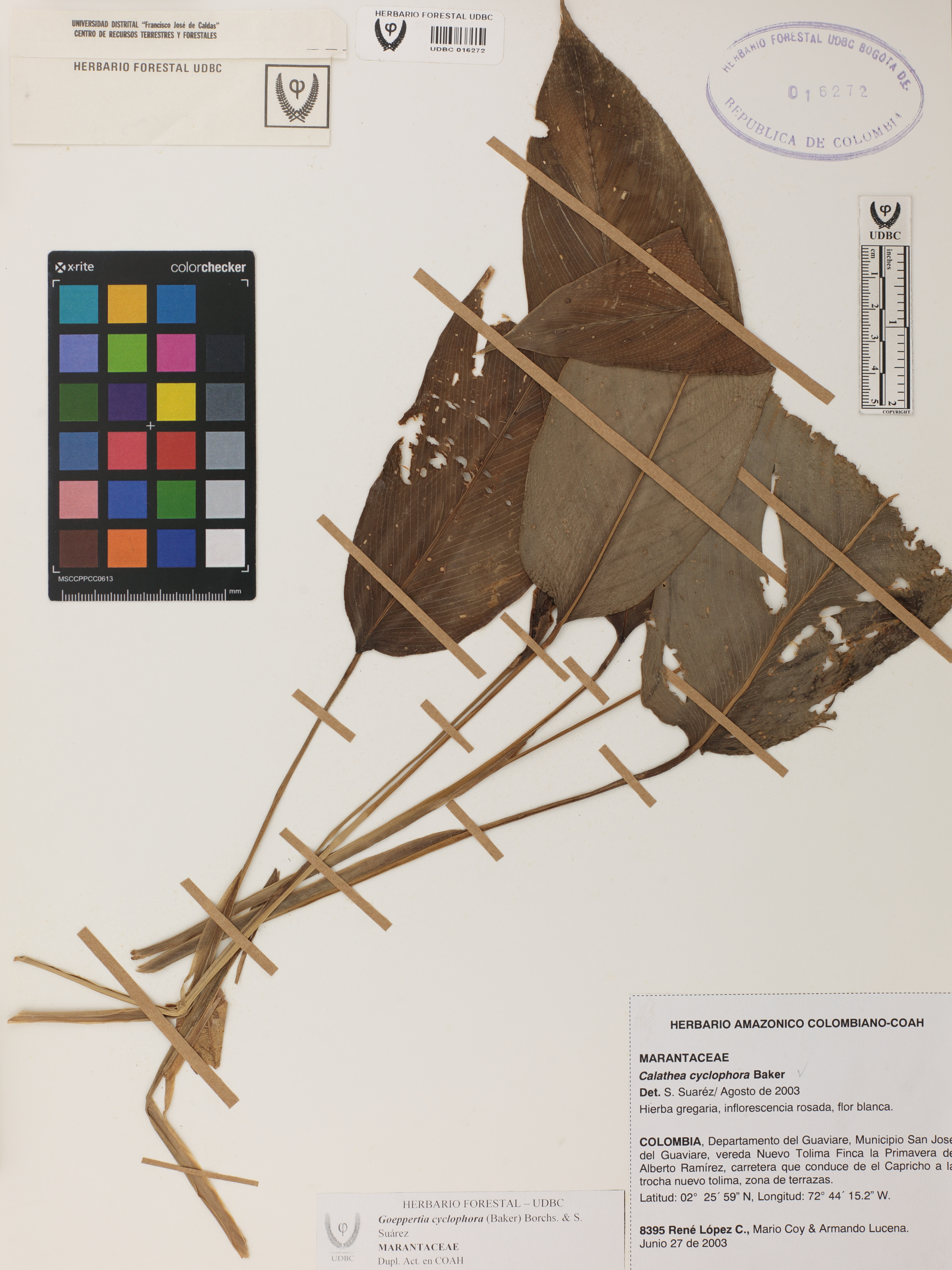 Fotografía del ejemplar López, R. 8395, determinado como Goeppertia cyclophora en el año 2003