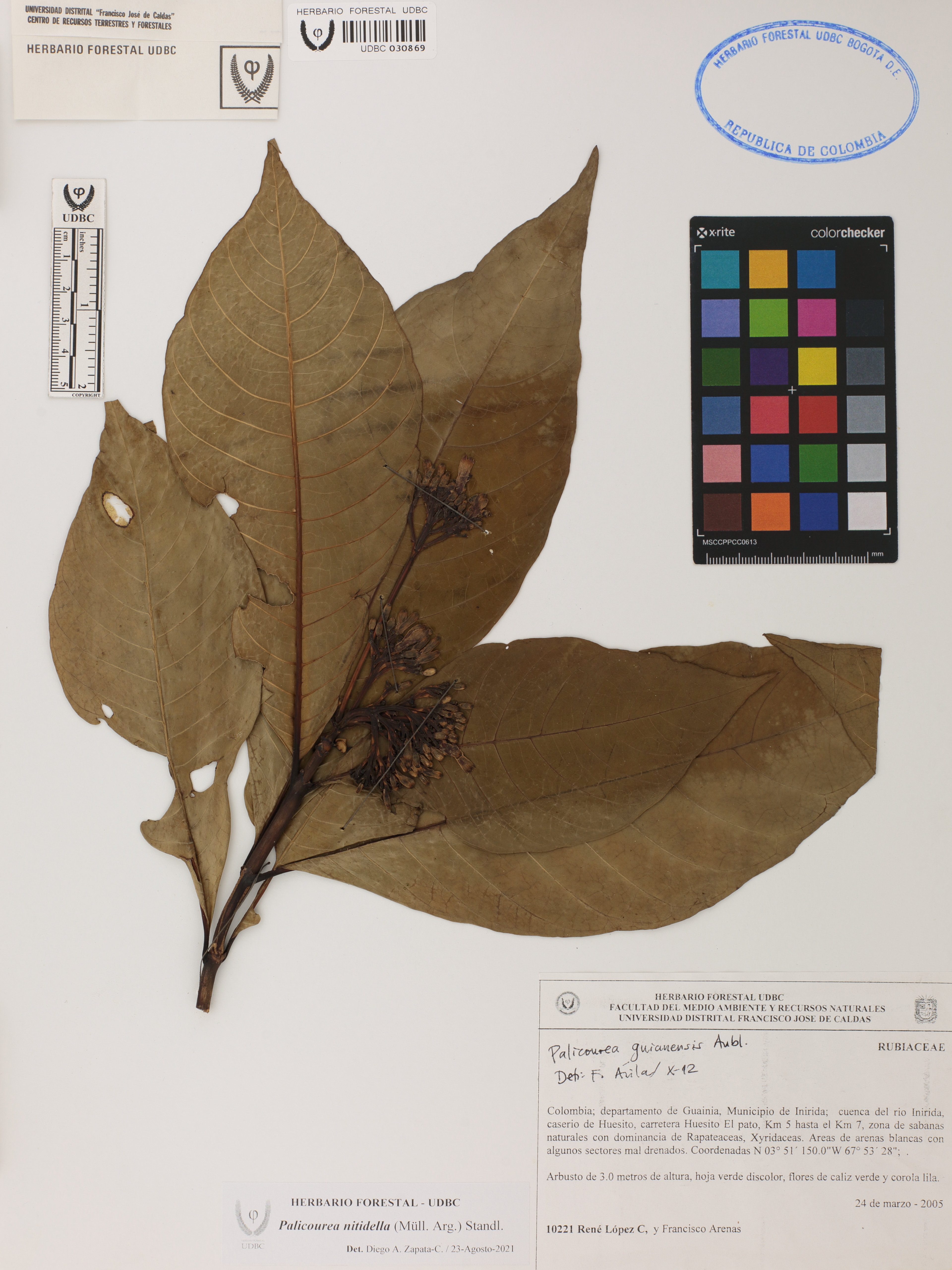Fotografía del ejemplar López, R. 10221, determinado como Palicourea nitidella en el año 2021