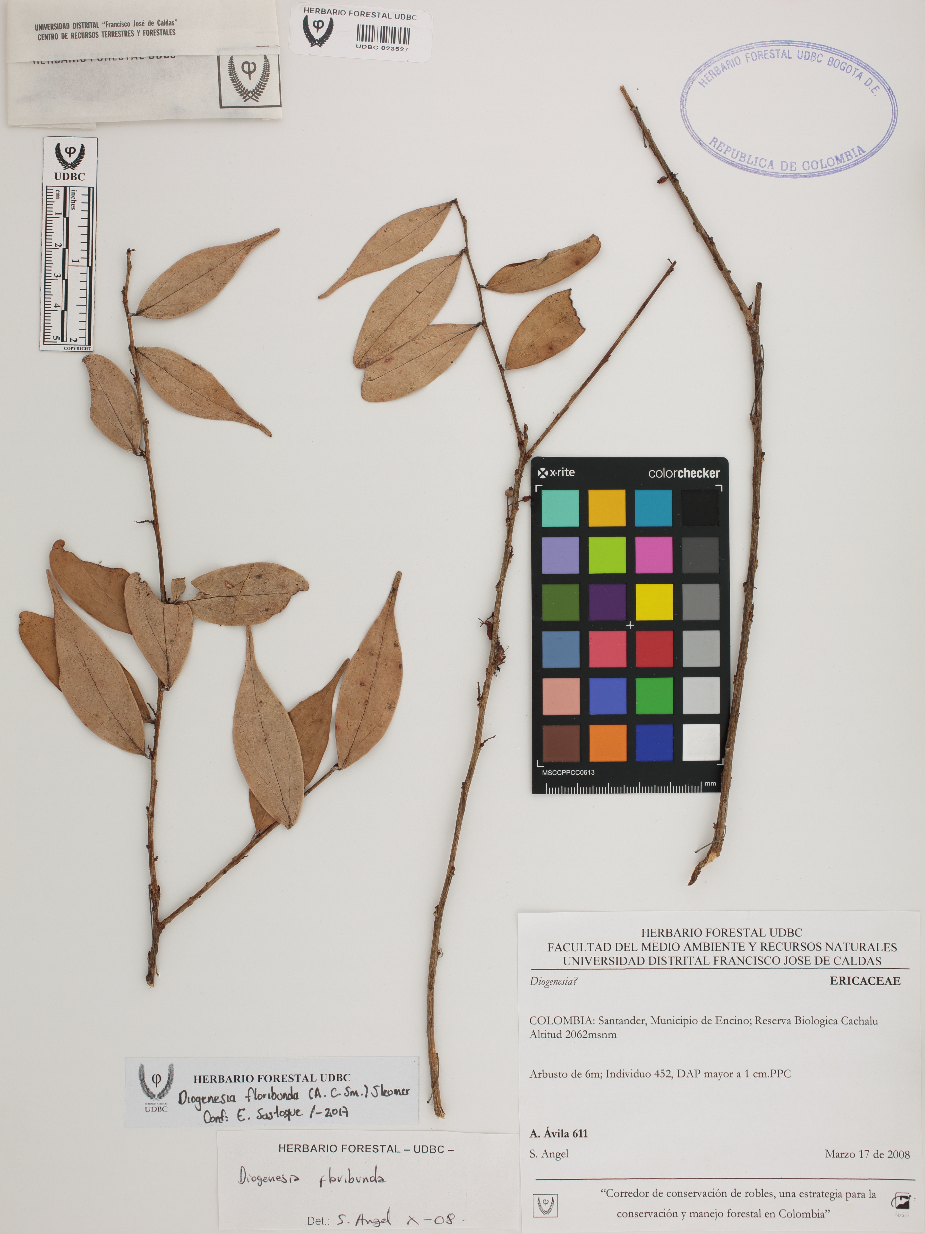 Fotografía del ejemplar Ávila, A. 611, determinado como Diogenesia floribunda en el año 2008