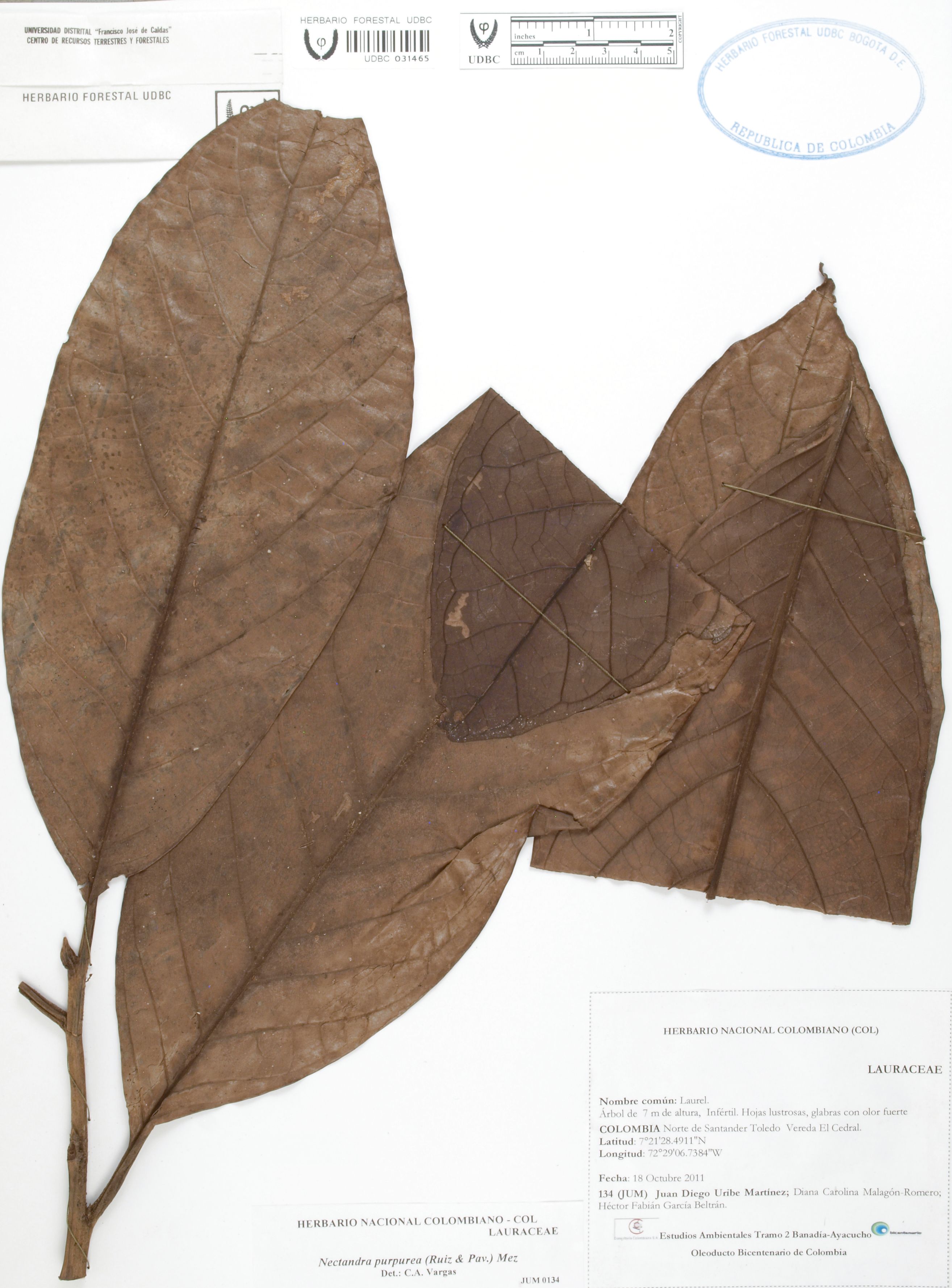 Fotografía del ejemplar Uribe, J. 134, determinado como Lauraceae en el año 2021