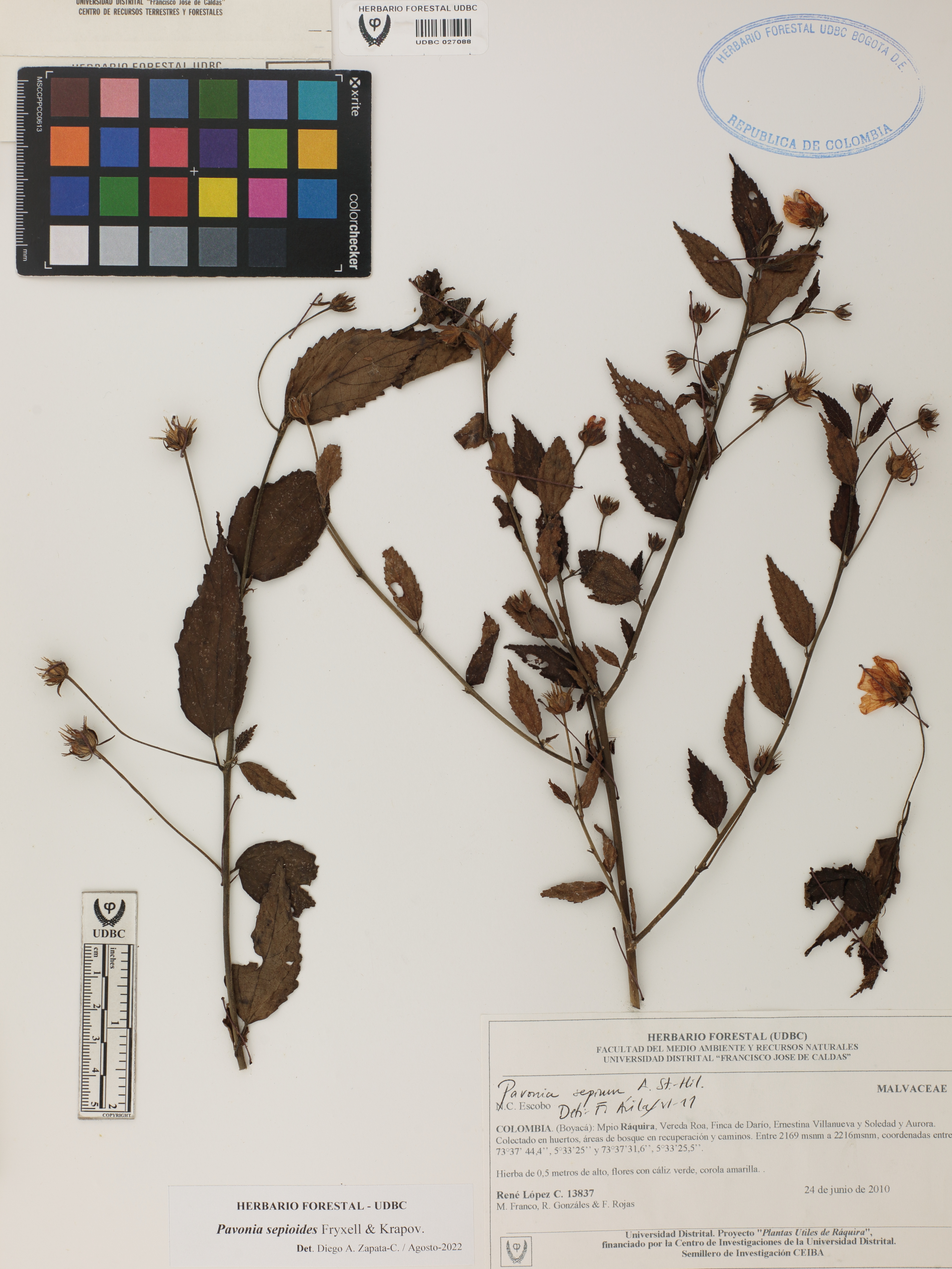 Fotografía del ejemplar López, R. 13837, determinado como Pavonia sepioides en el año 2022