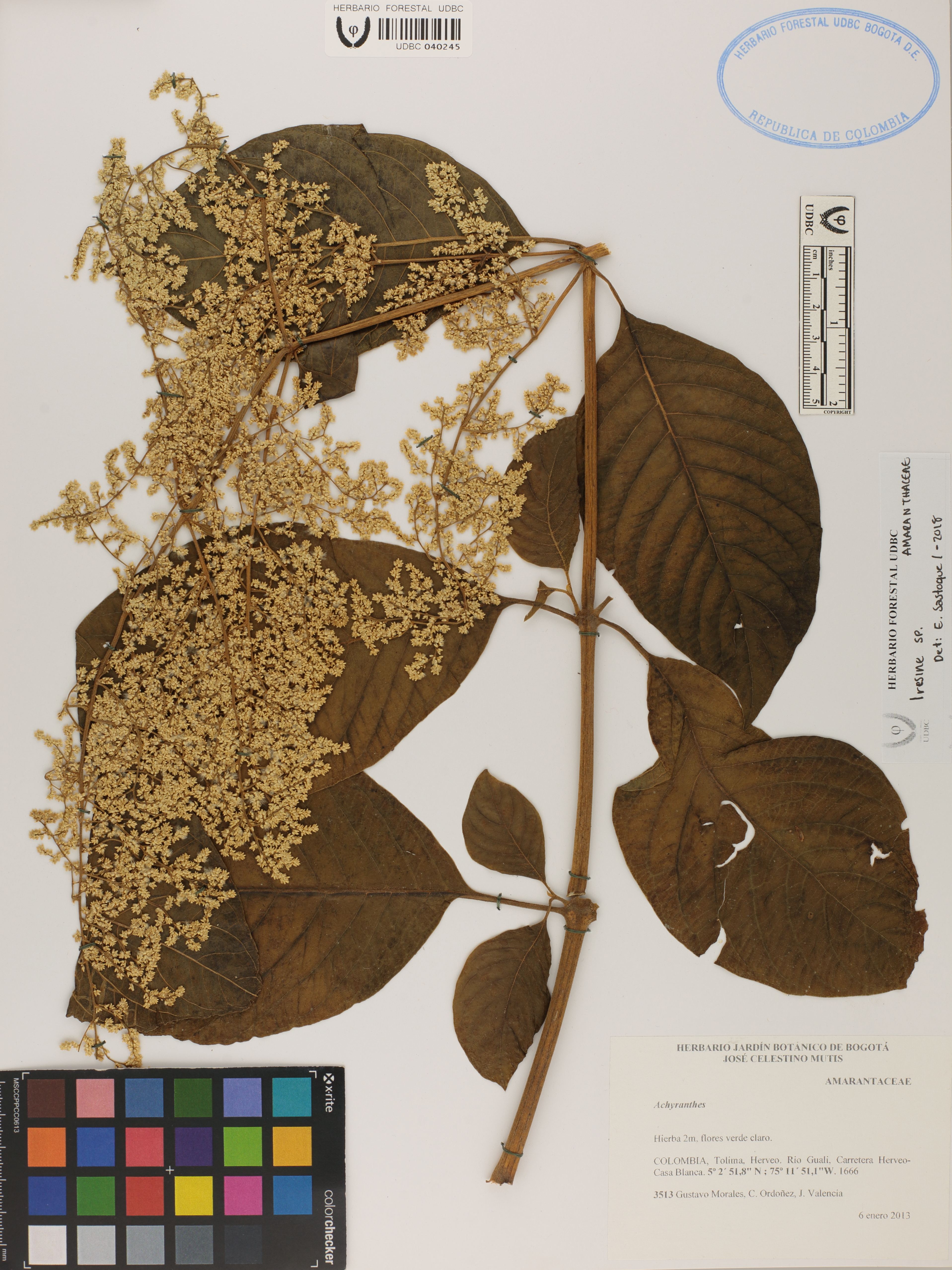Fotografía del ejemplar Morales, G. 3513, determinado como Iresine sp. en el año 2018