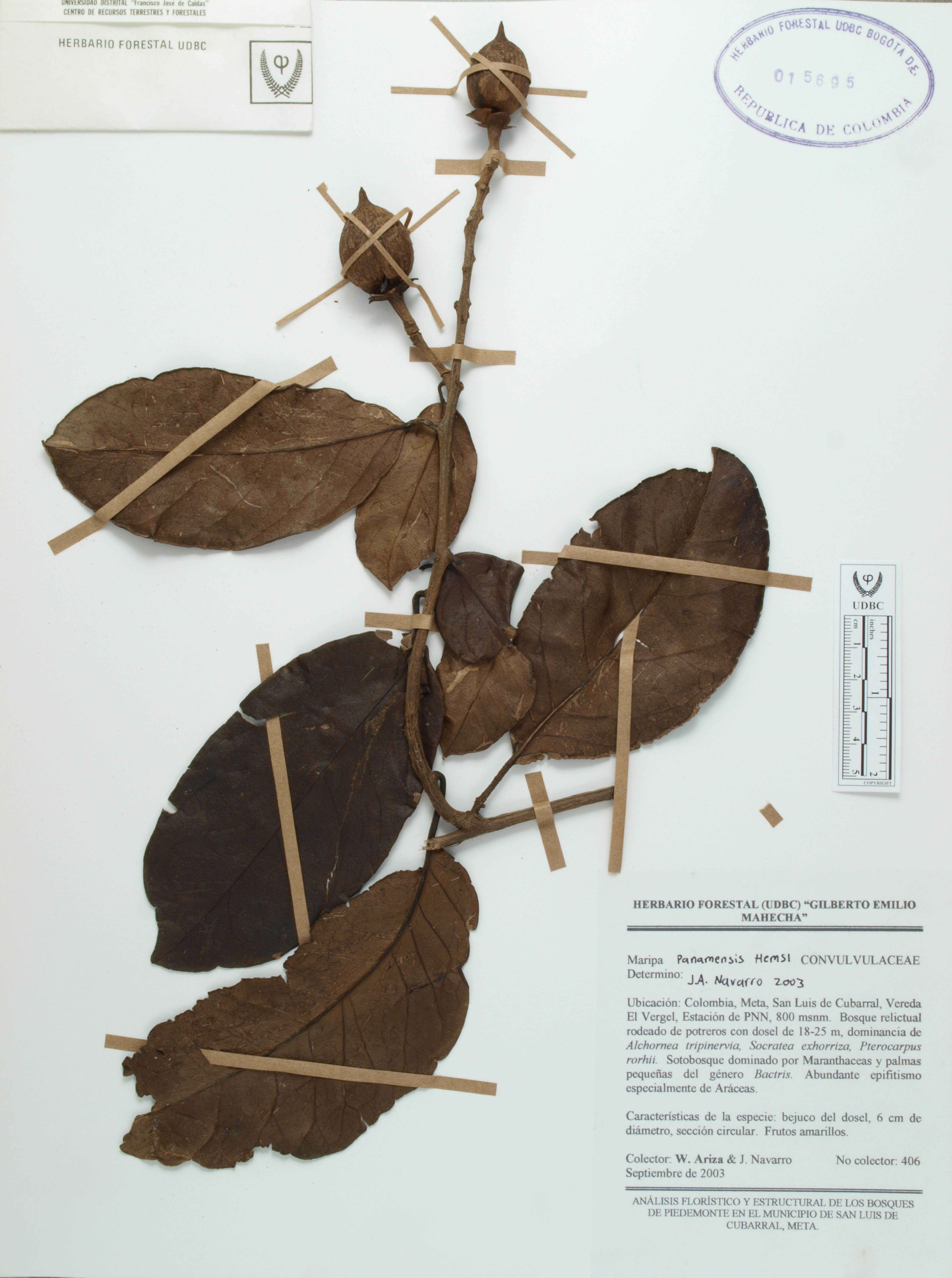 Fotografía del ejemplar Ariza, W. 406, determinado como Maripa panamensis en el año 2003