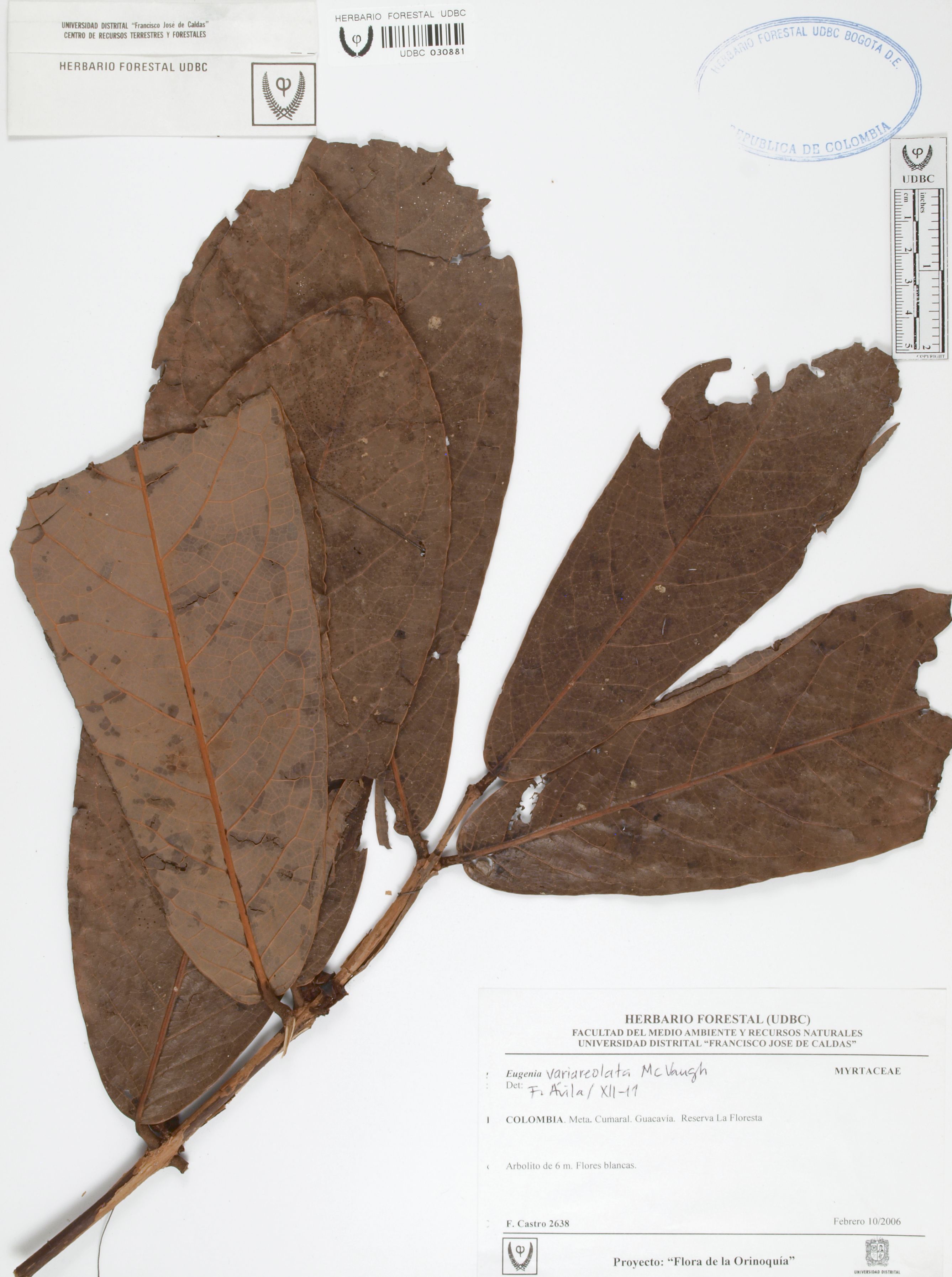 Fotografía del ejemplar Castro, F. 2638, determinado como Eugenia variareolata en el año 2011