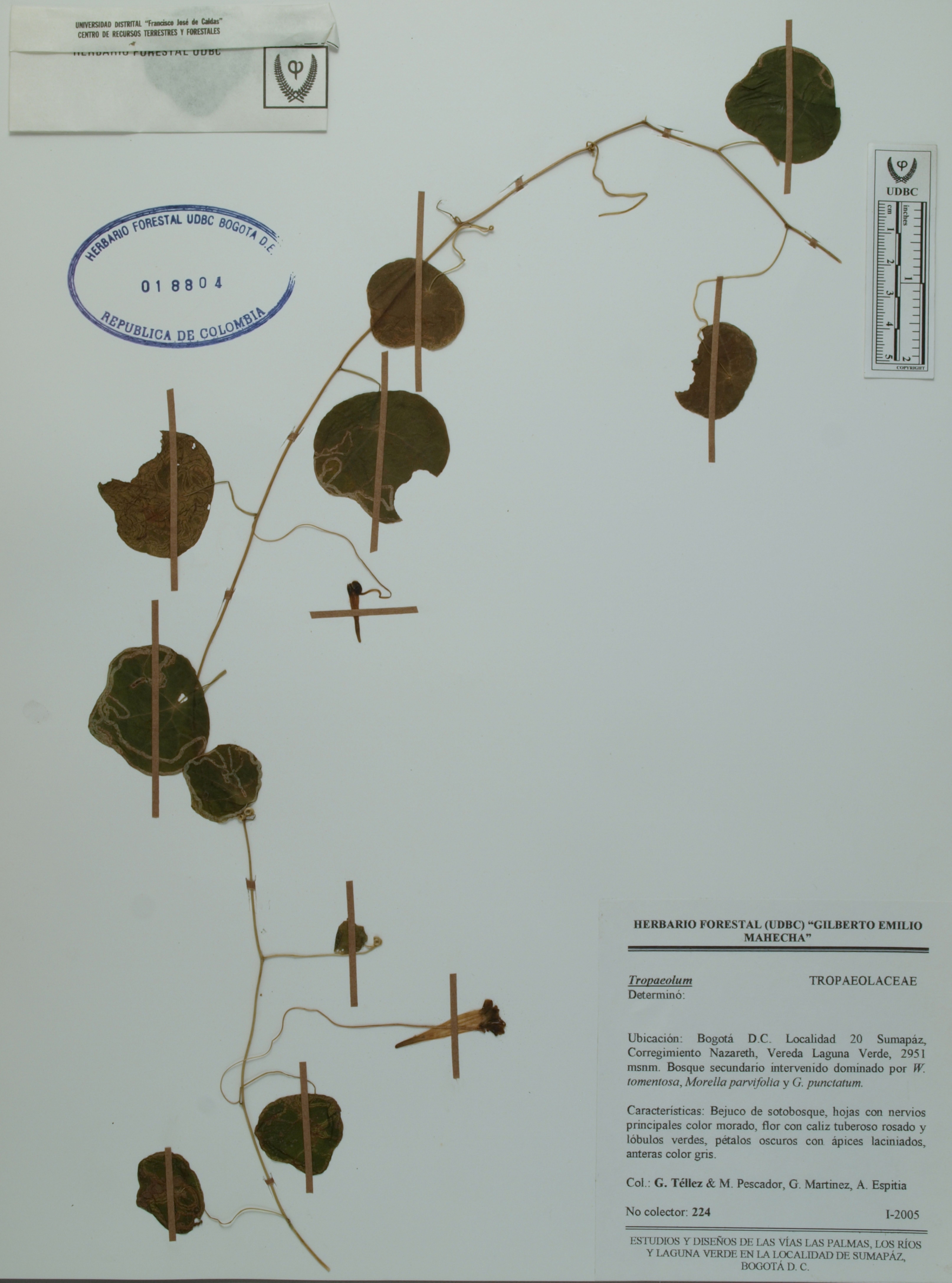 Fotografía del ejemplar Téllez, G. 224, determinado como Tropaeolum sp.