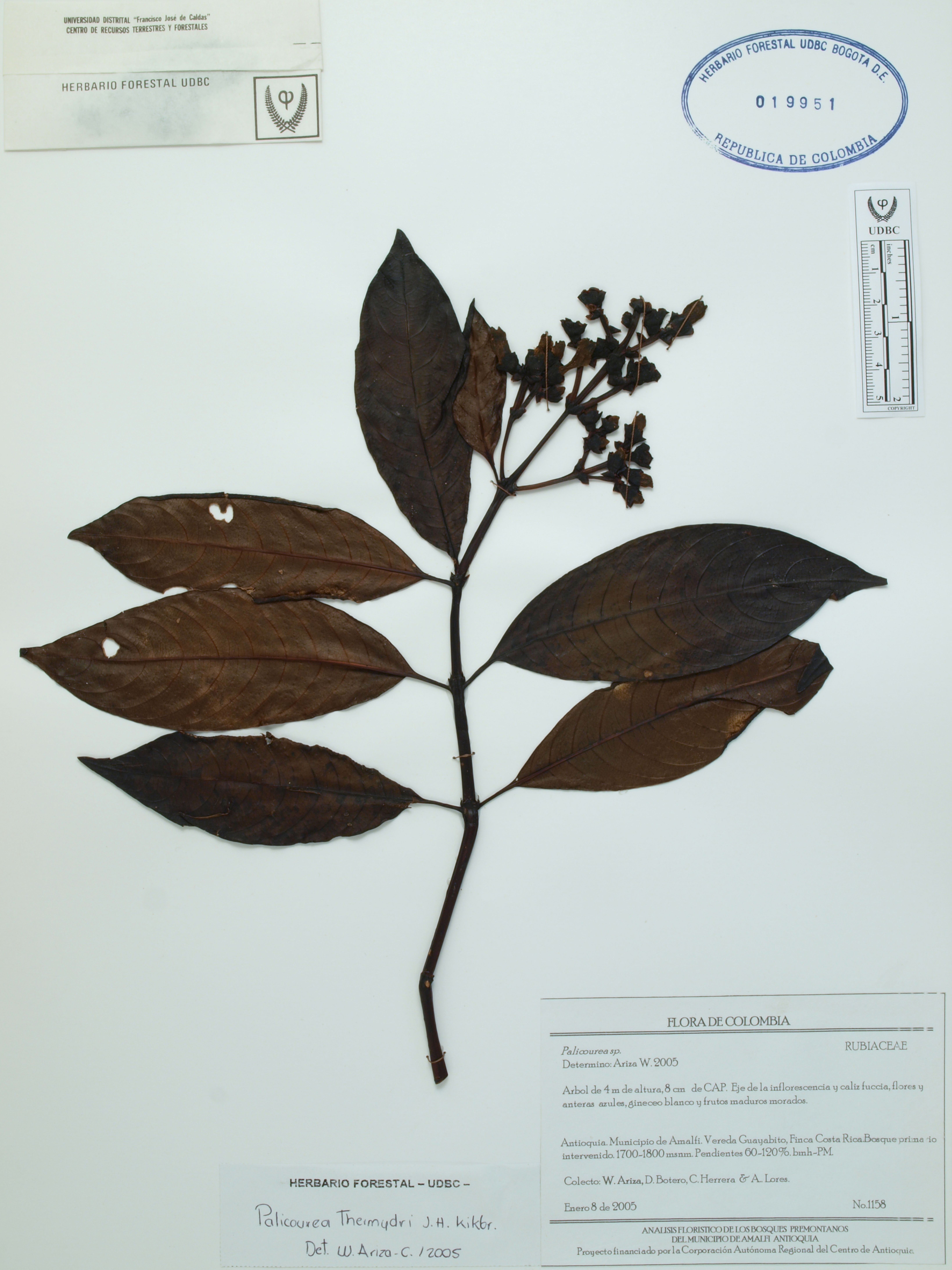 Fotografía del ejemplar Ariza, W. 1158, determinado como Palicourea thermydri en el año 2005
