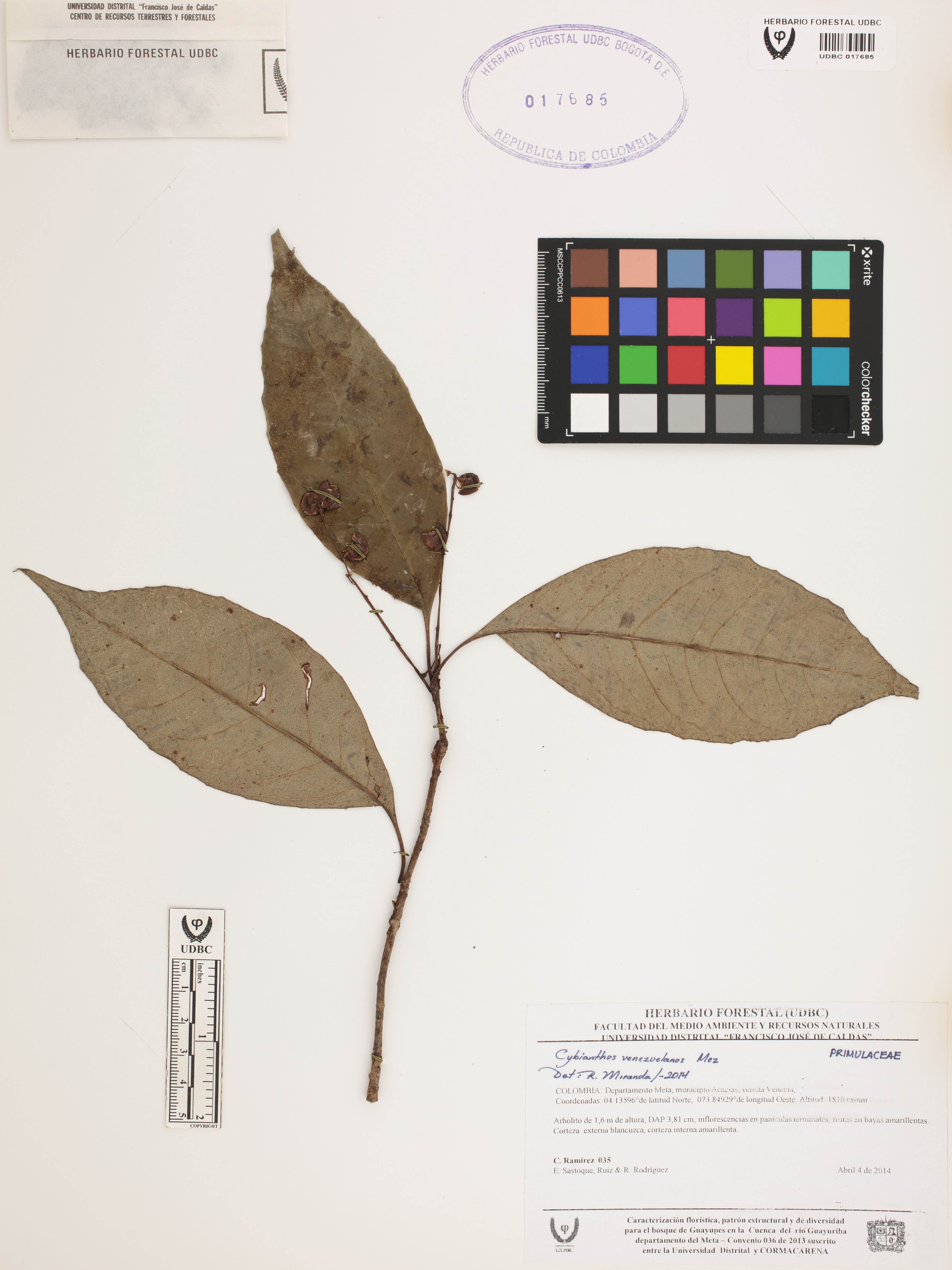 | dc.description | Fotografía del ejemplar Ramírez, C. 35, determinado como Cybianthus venezuelanus en el año 2014 | |