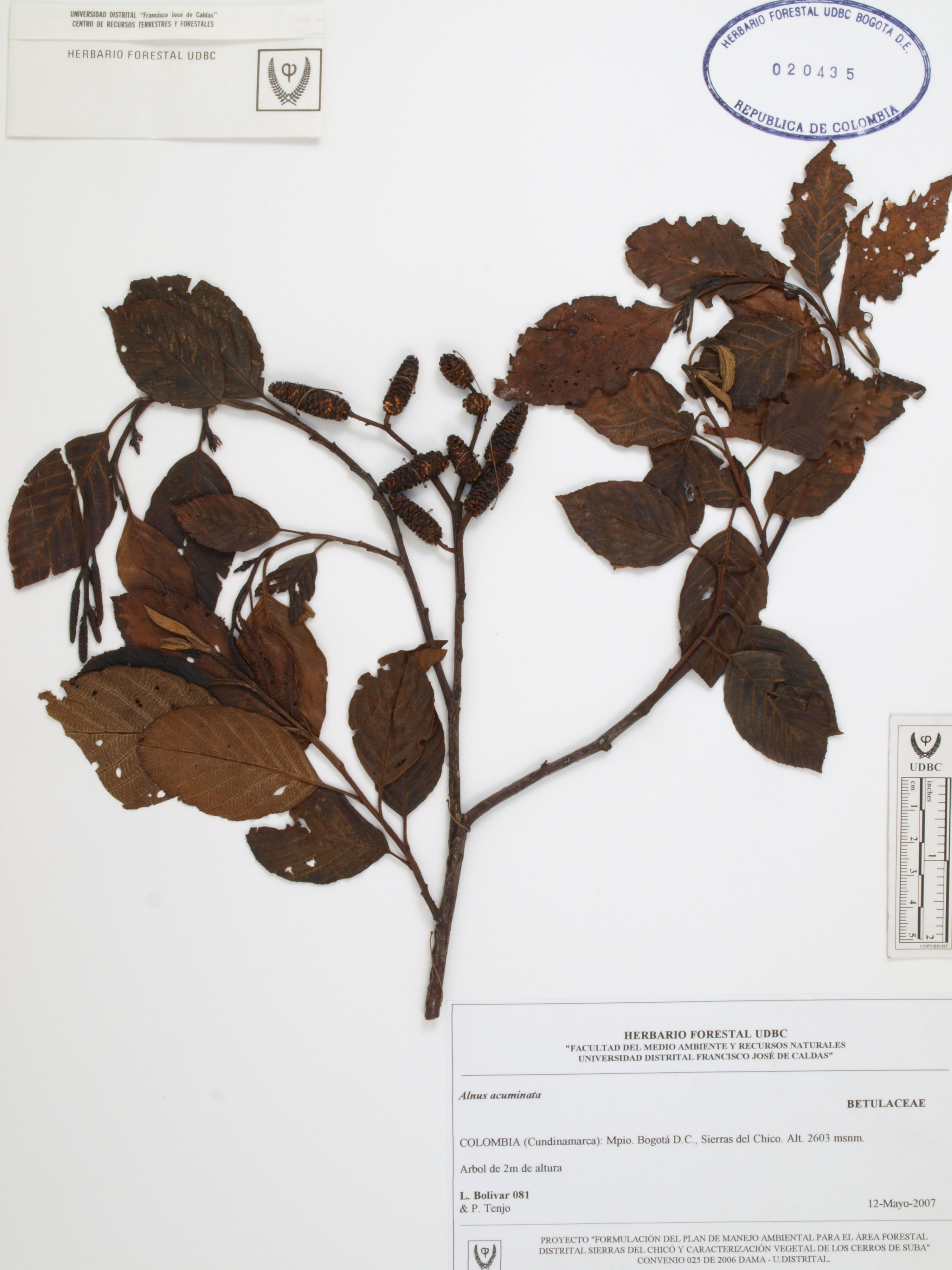 Fotografía del ejemplar Bolívar, L. 81, determinado como Alnus acuminata