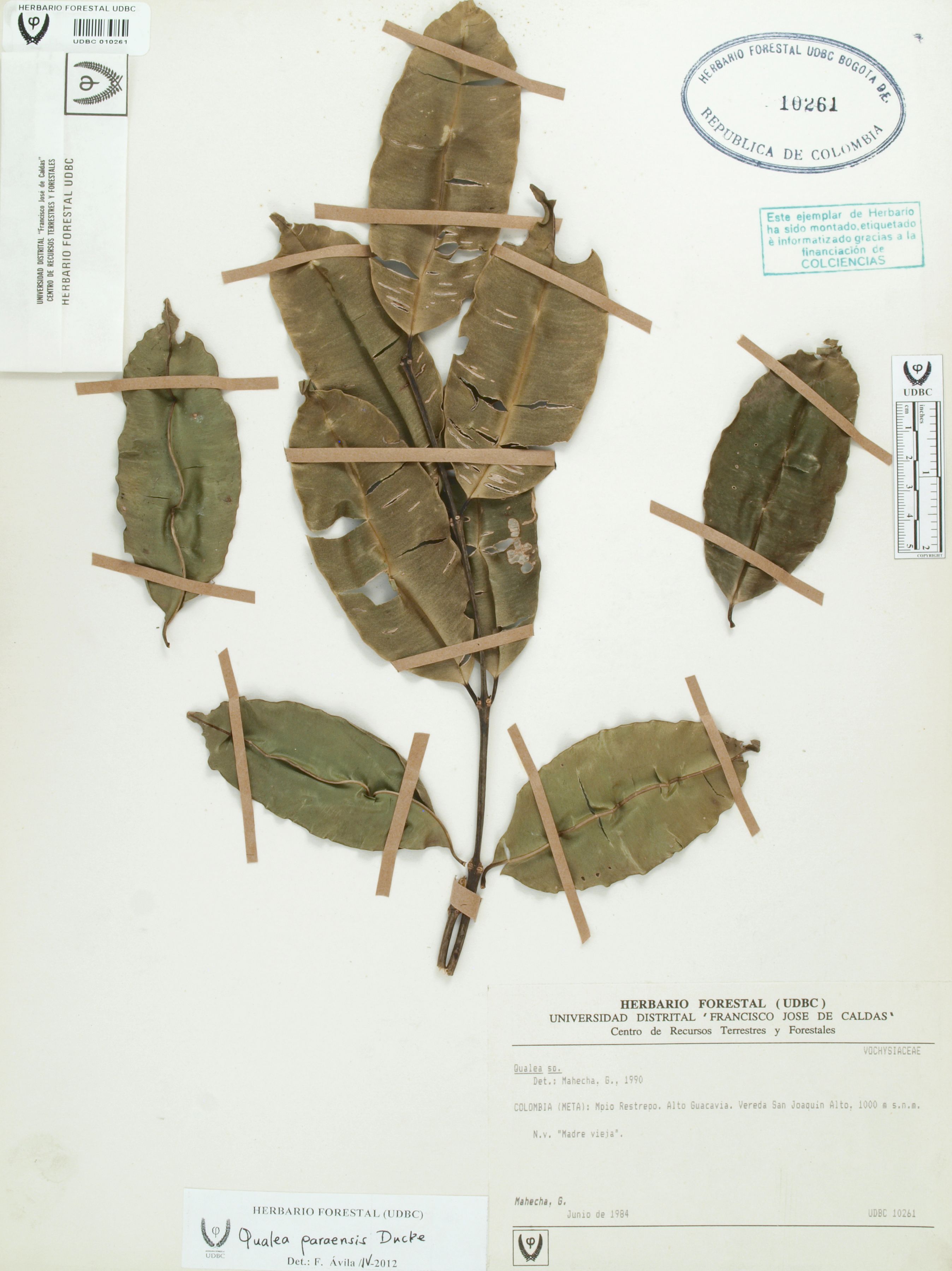 Fotografía del ejemplar Mahecha, G., determinado como Qualea paraensis en el año 2012