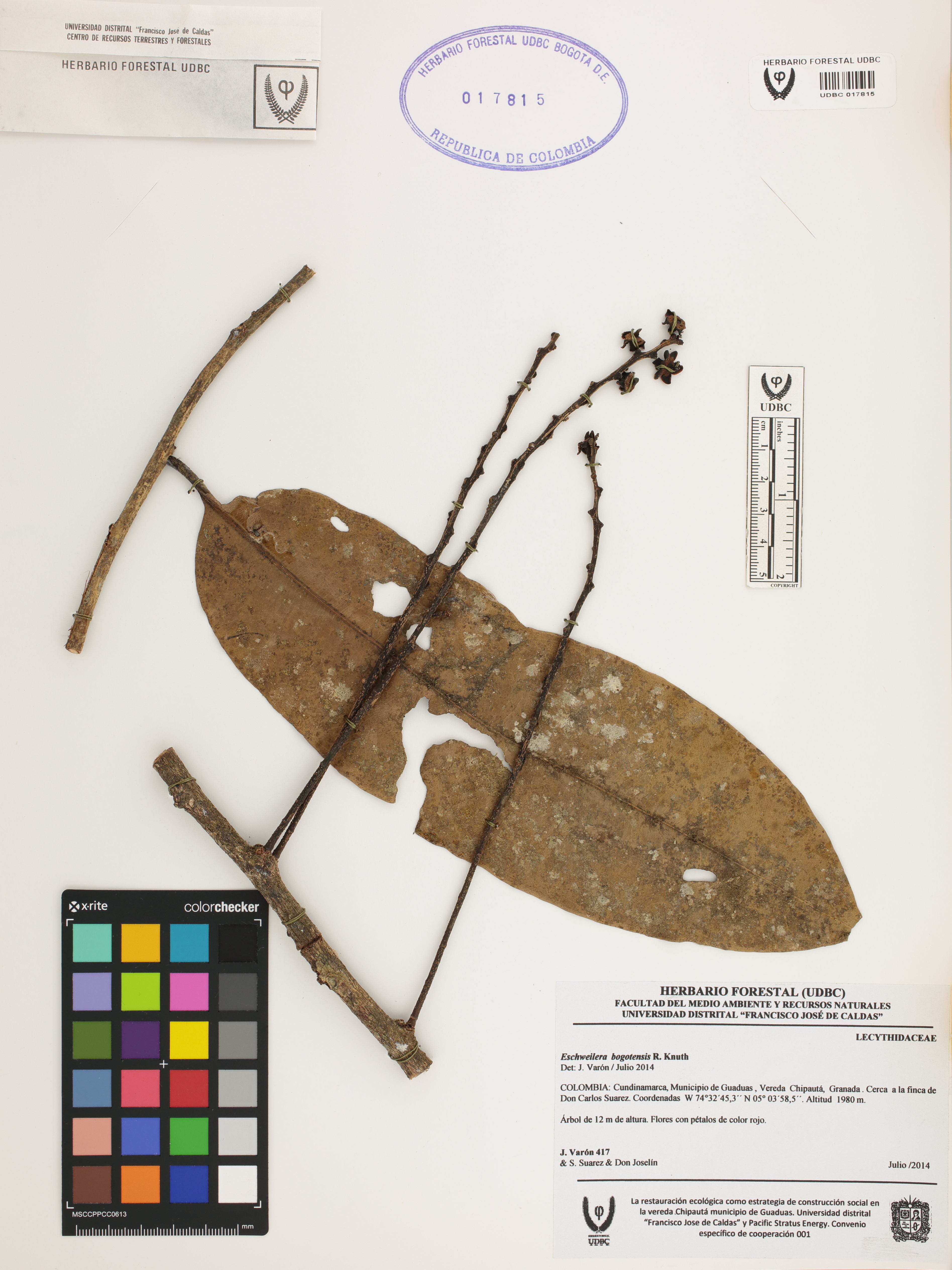 | dc.description | Fotografía del ejemplar Varón, J. 417, determinado como Eschweilera bogotensis en el año 2014 | |