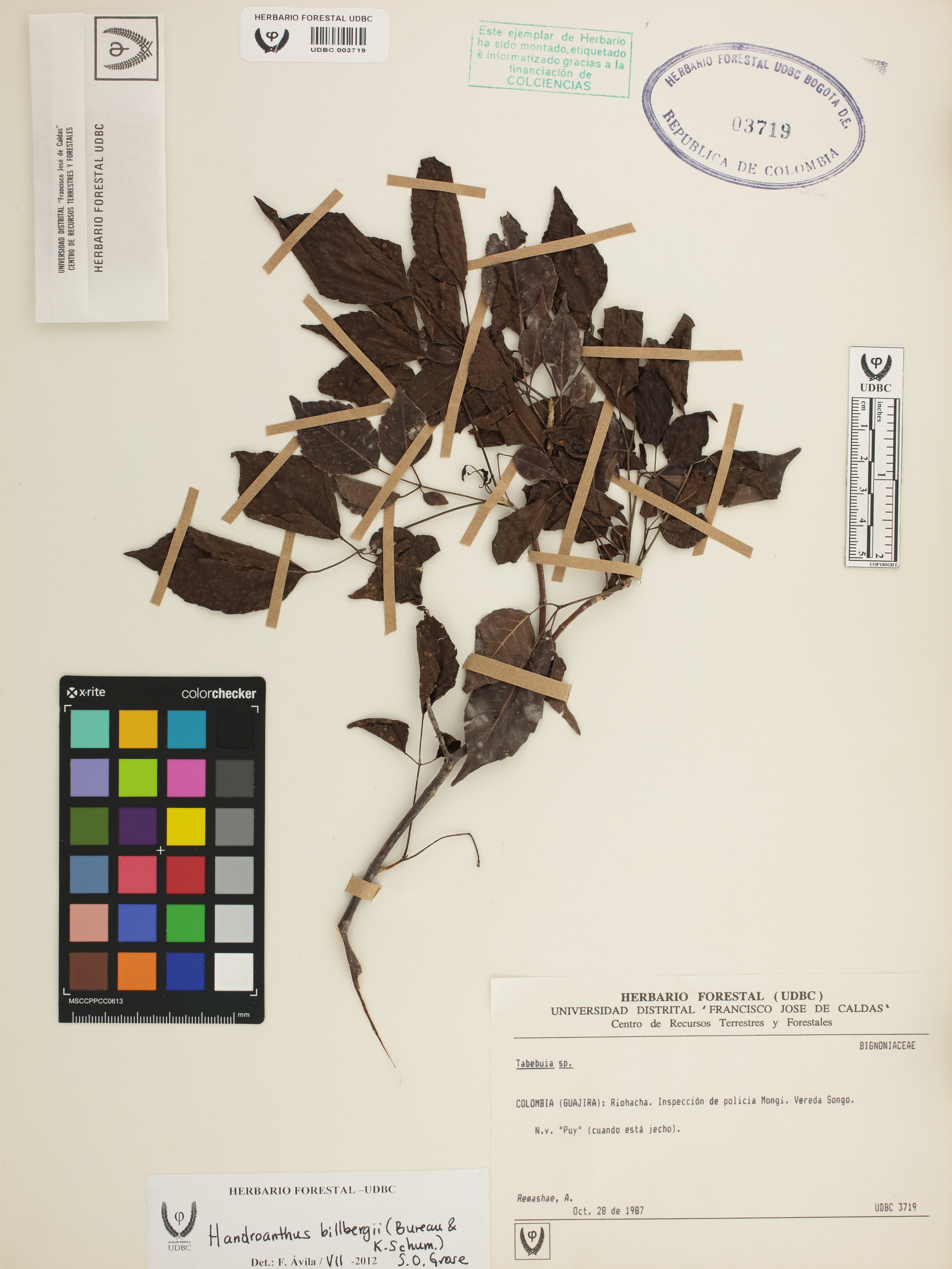 Fotografía del ejemplar Remashae, A., determinado como Handroanthus billbergii en el año 2012