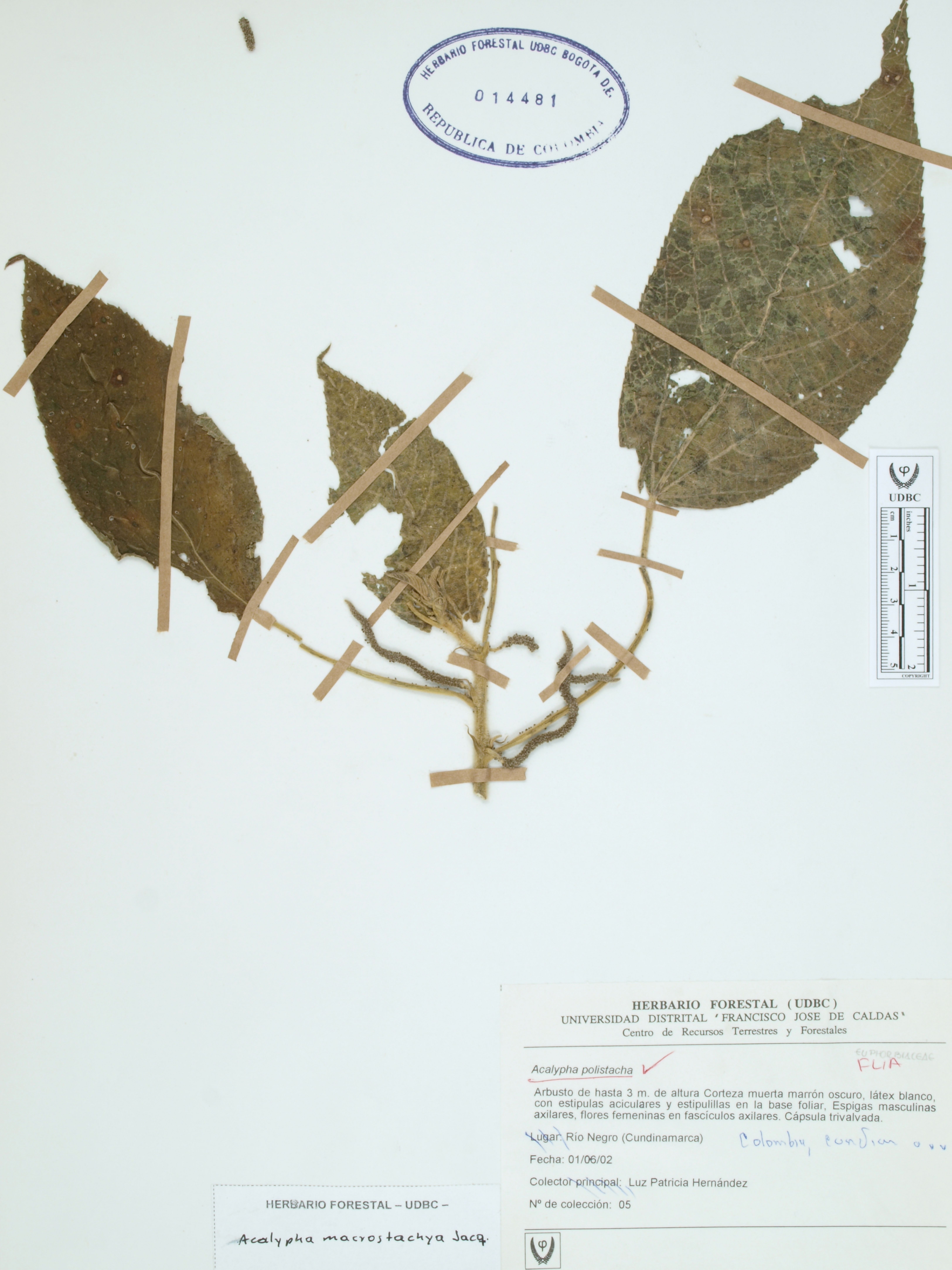 | dc.description | Fotografía del ejemplar Hernández, L., determinado como Acalypha macrostachya en el año 2007 | |