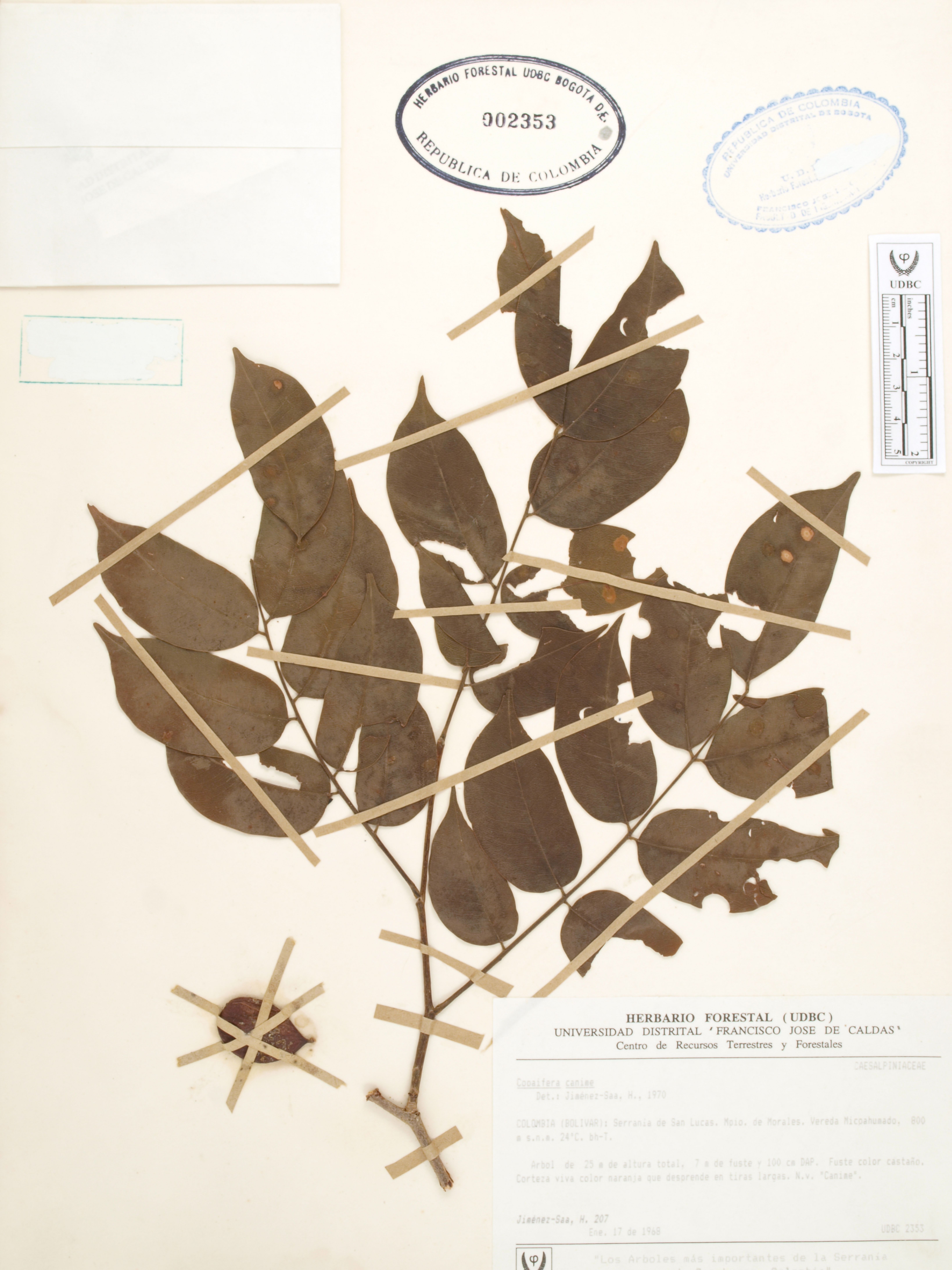 | dc.description | Fotografía del ejemplar Jiménez-Saa, H. 207, determinado como Copaifera canime en el año 1970 | |