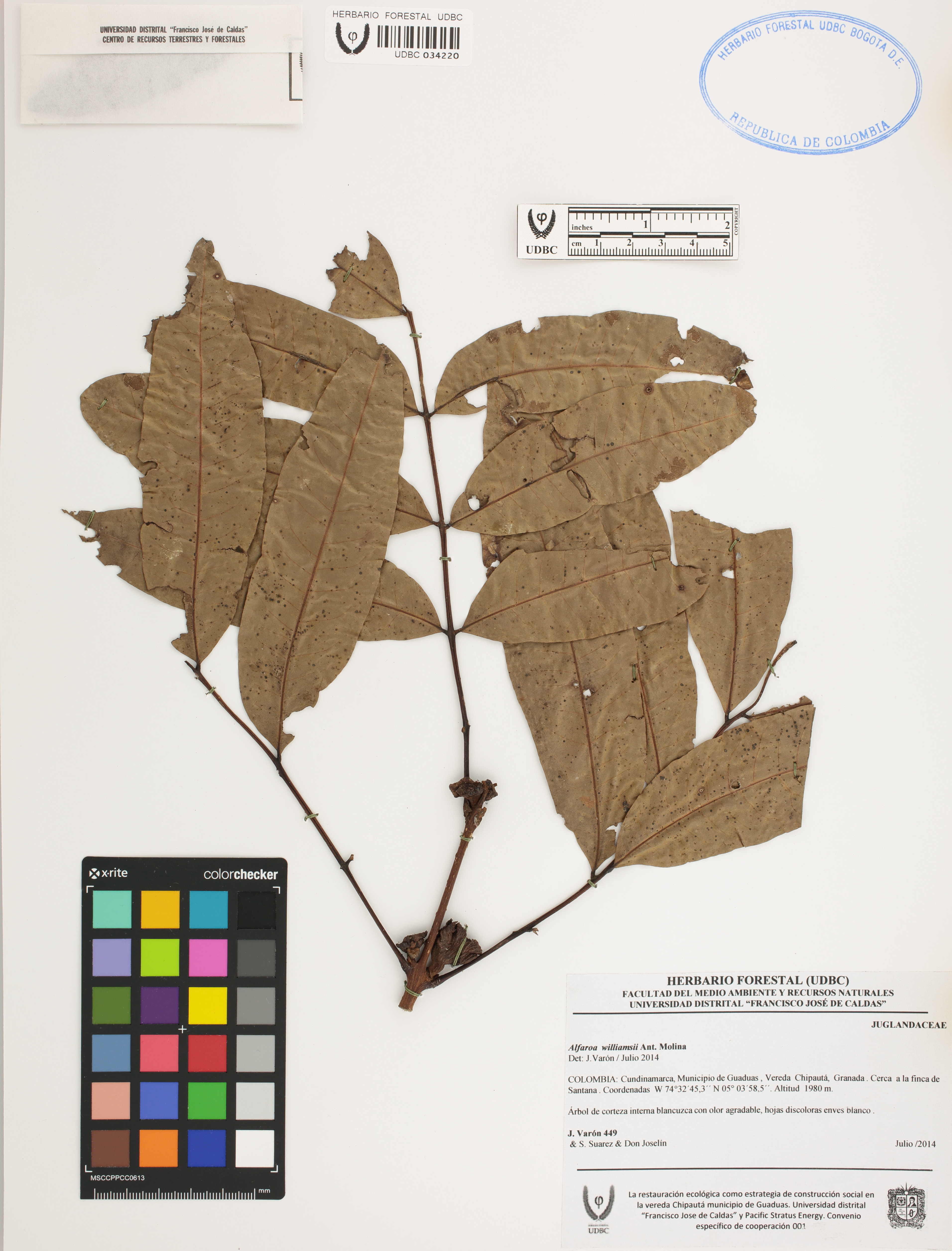 Fotografía del ejemplar Varón, J. 449, determinado como Alfaroa williamsii en el año 2014