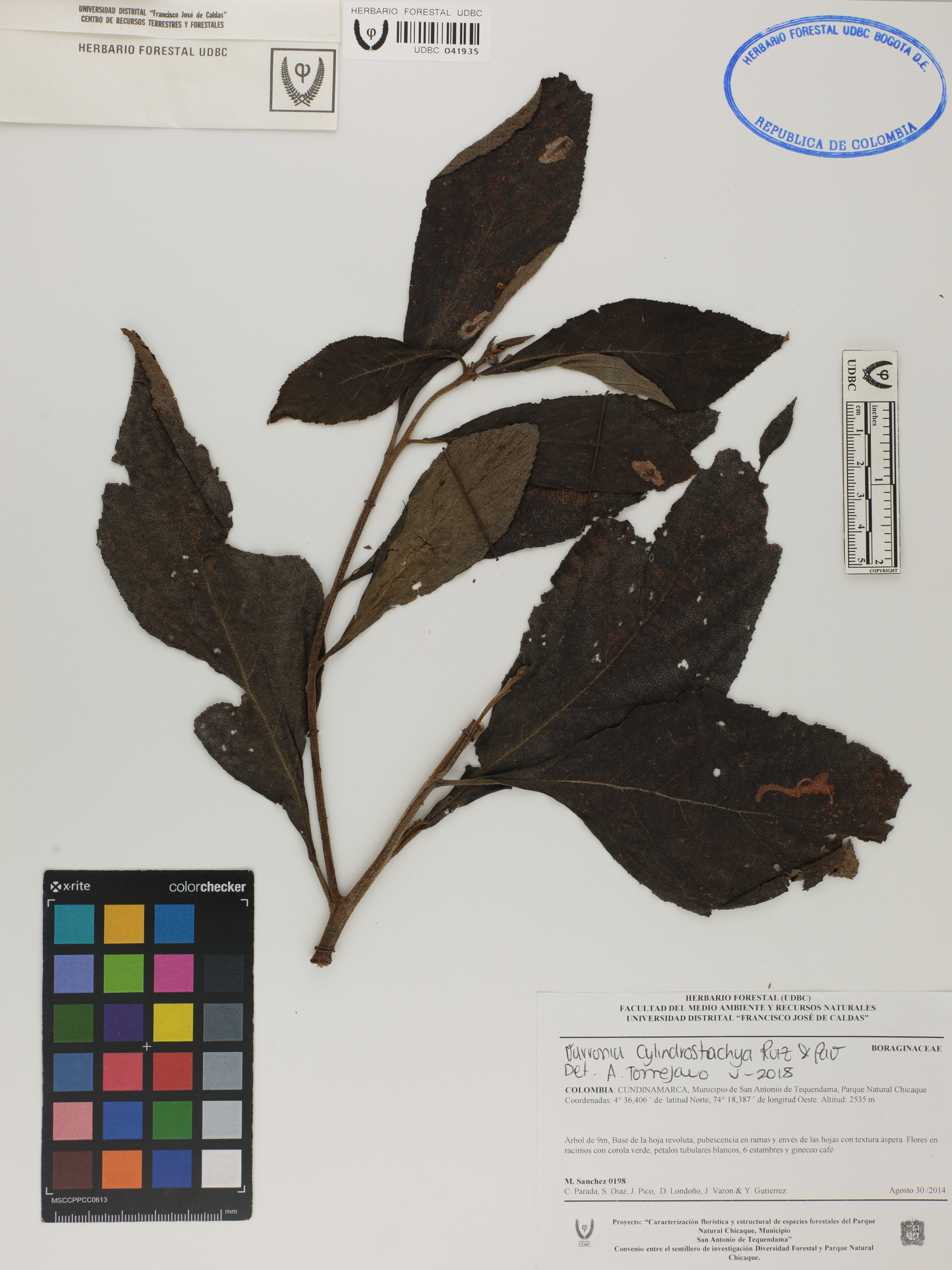 Fotografía del ejemplar Sánchez, M. 198, determinado como Varronia cylindristachya en el año 2018