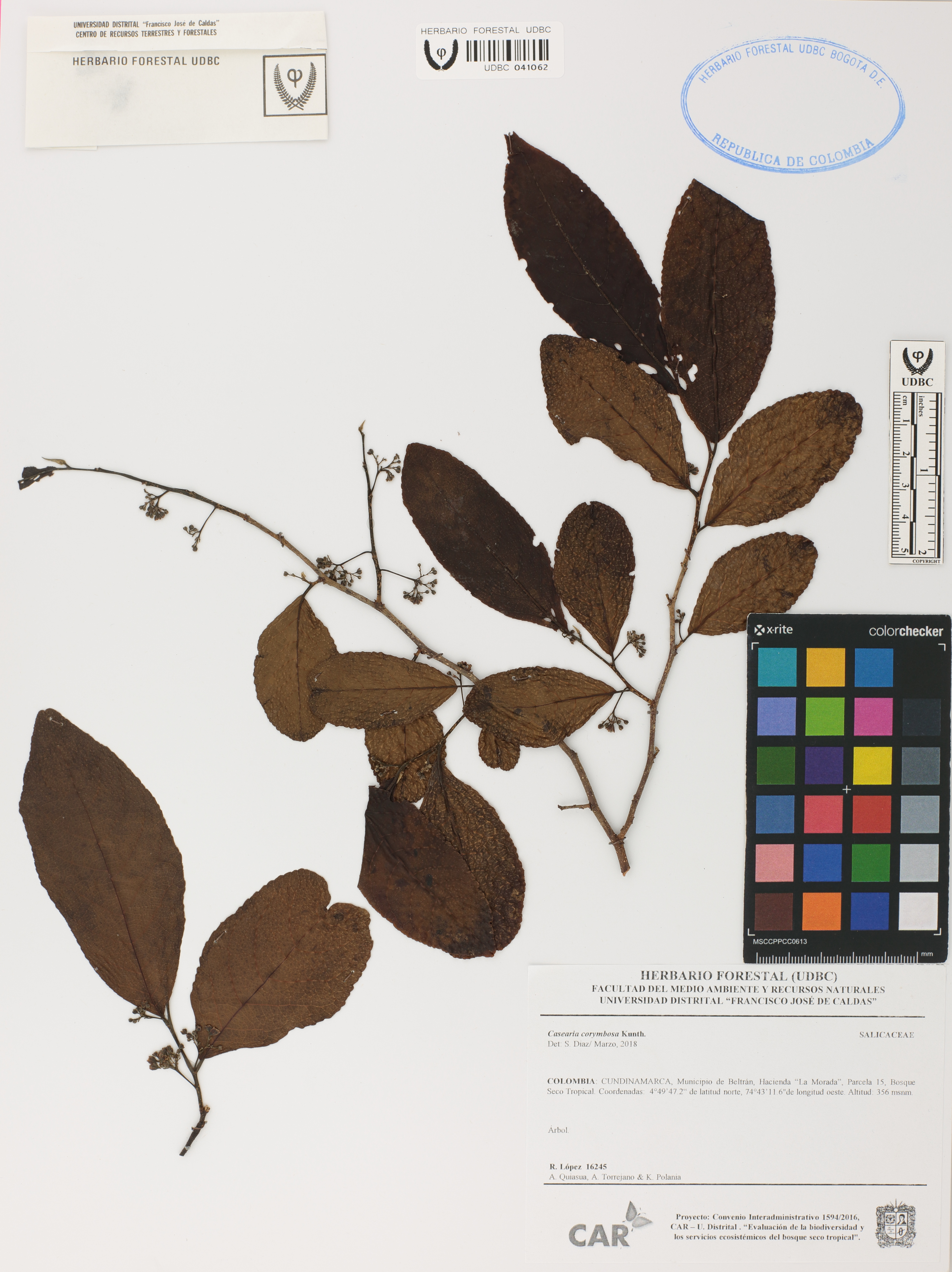 Fotografía del ejemplar López, R. 16245, determinado como Casearia corymbosa en el año 2018