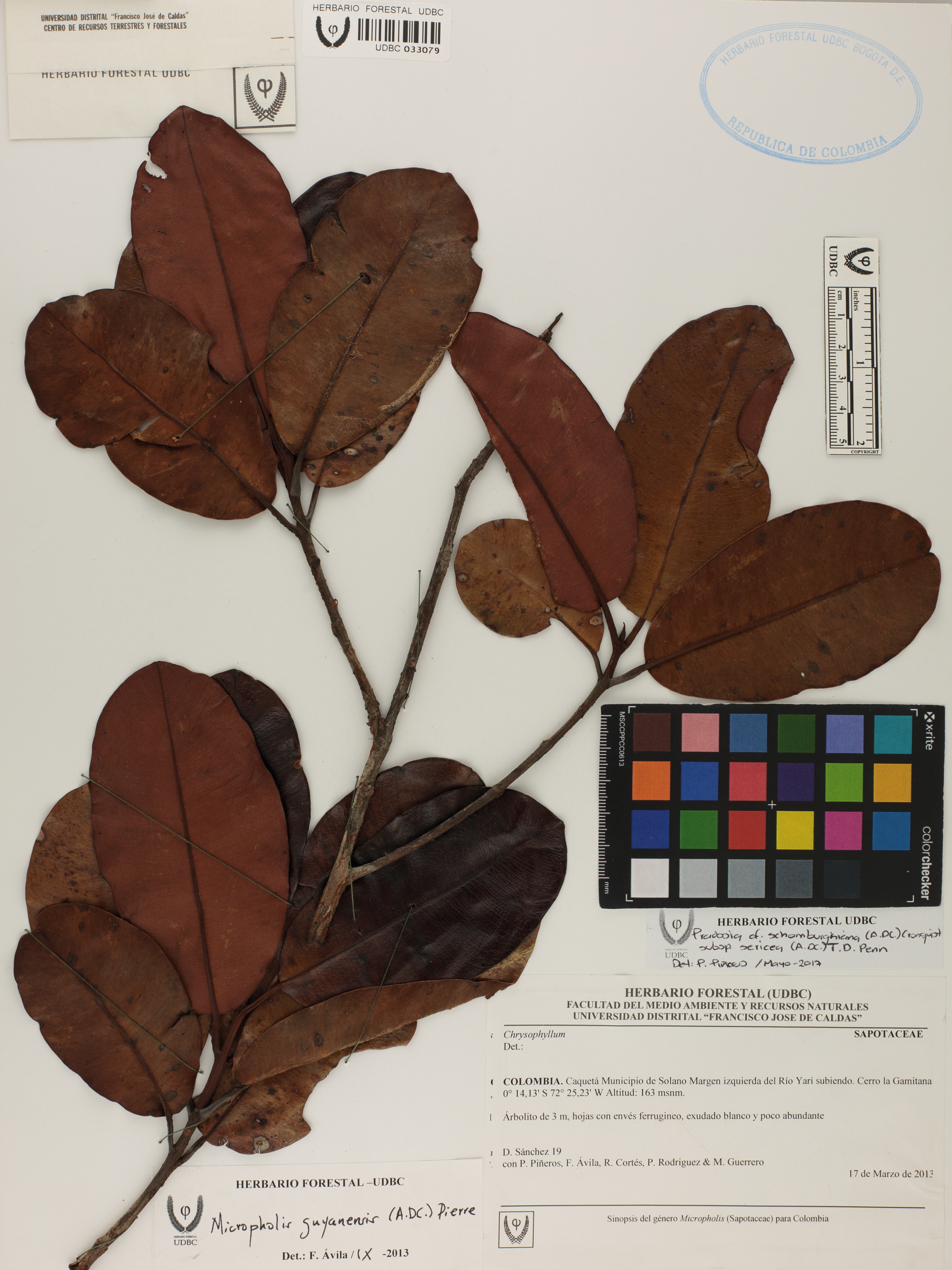 Fotografía del ejemplar Sánchez, D. 19, determinado como Pradosia schomburgkiana subsp. sericea en el año 2017