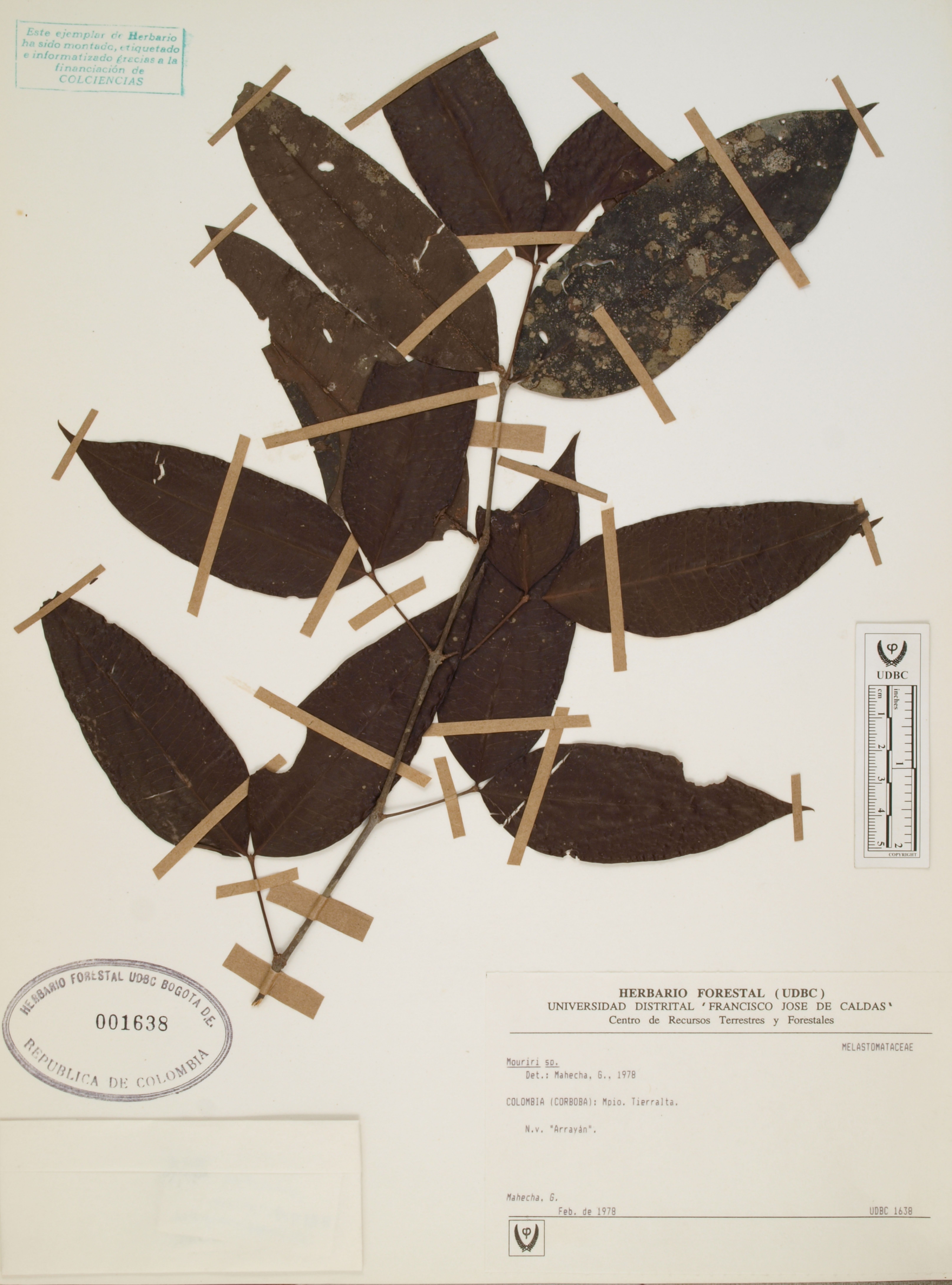 Fotografía del ejemplar Mahecha, G., determinado como Mouriri sp. en el año 1978