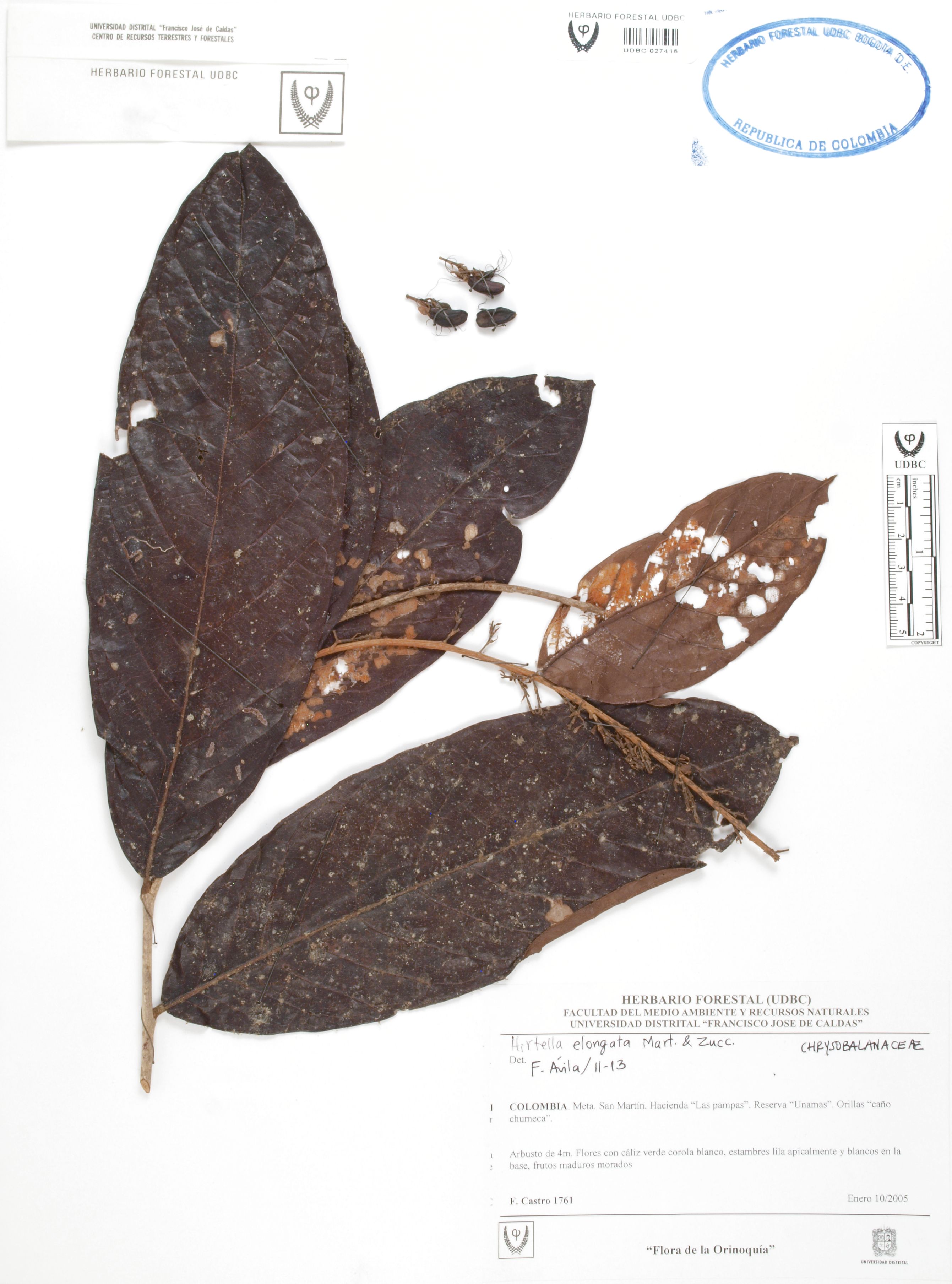 | dc.description | Fotografía del ejemplar Castro, F. 1761, determinado como Hirtella elongata en el año 2013 | |