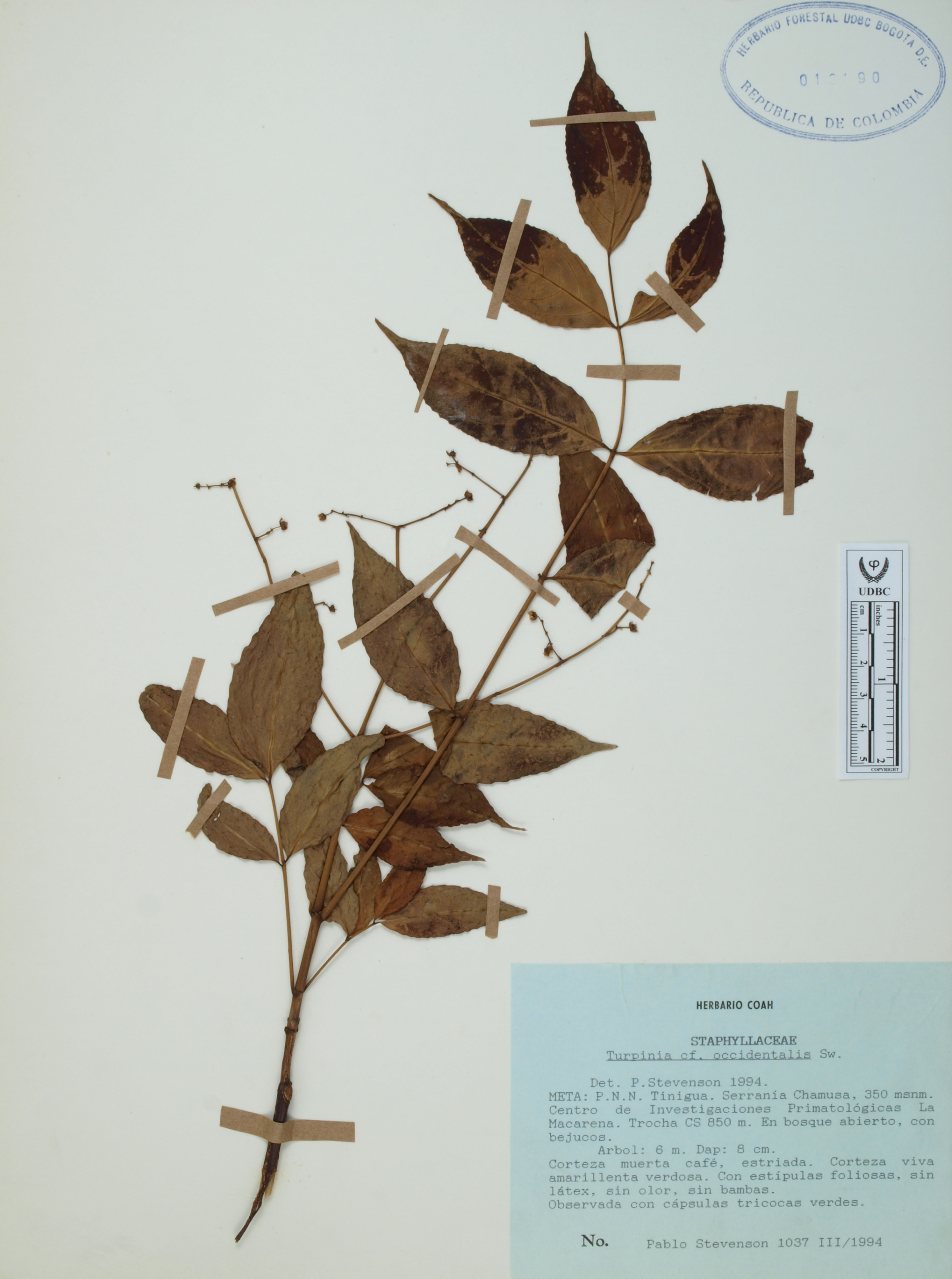 Fotografía del ejemplar Stevenson, P. 1037, determinado como Turpinia occidentalis en el año 1994