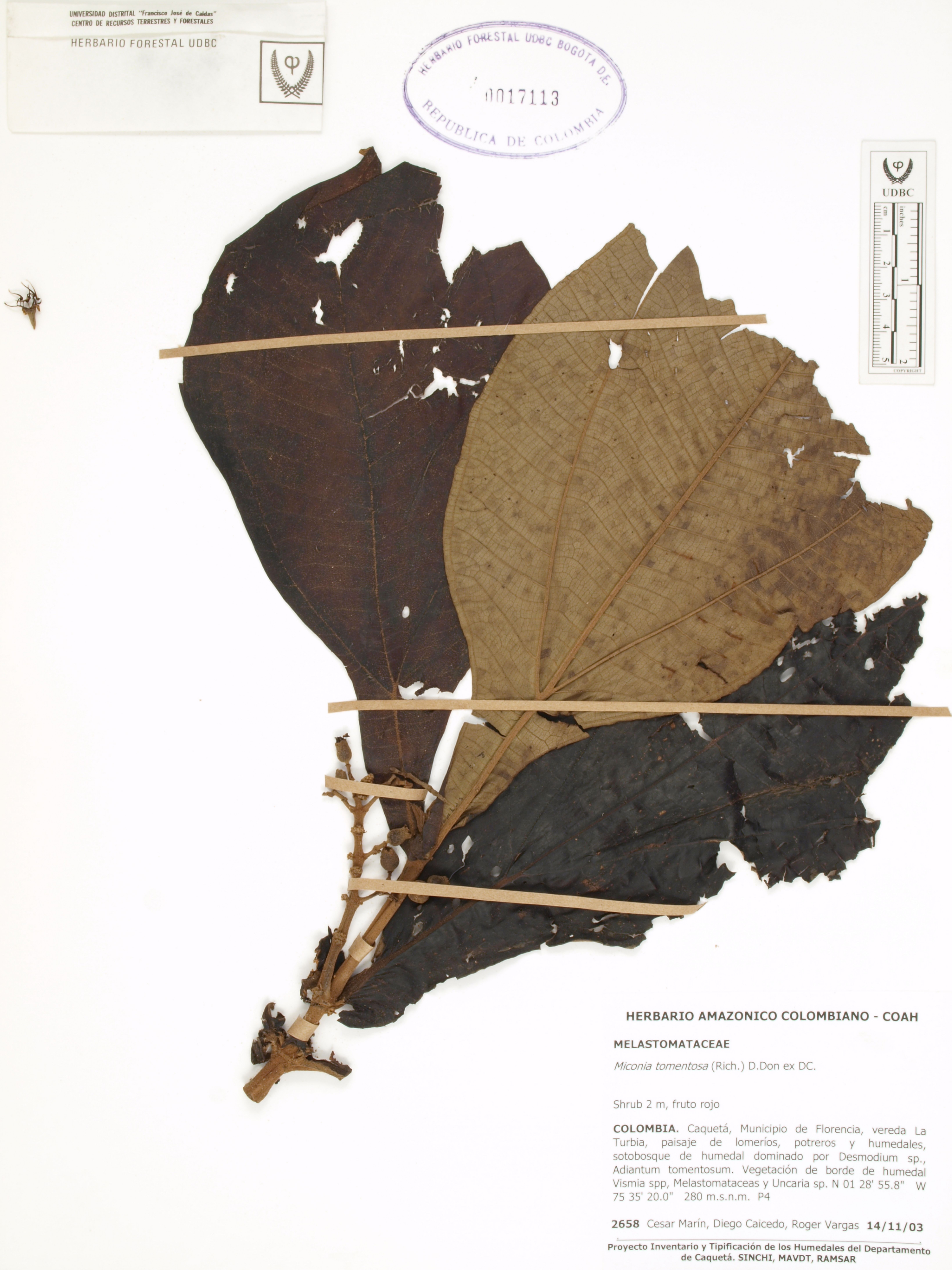 Fotografía del ejemplar Marín, C. 2658, determinado como Miconia tomentosa