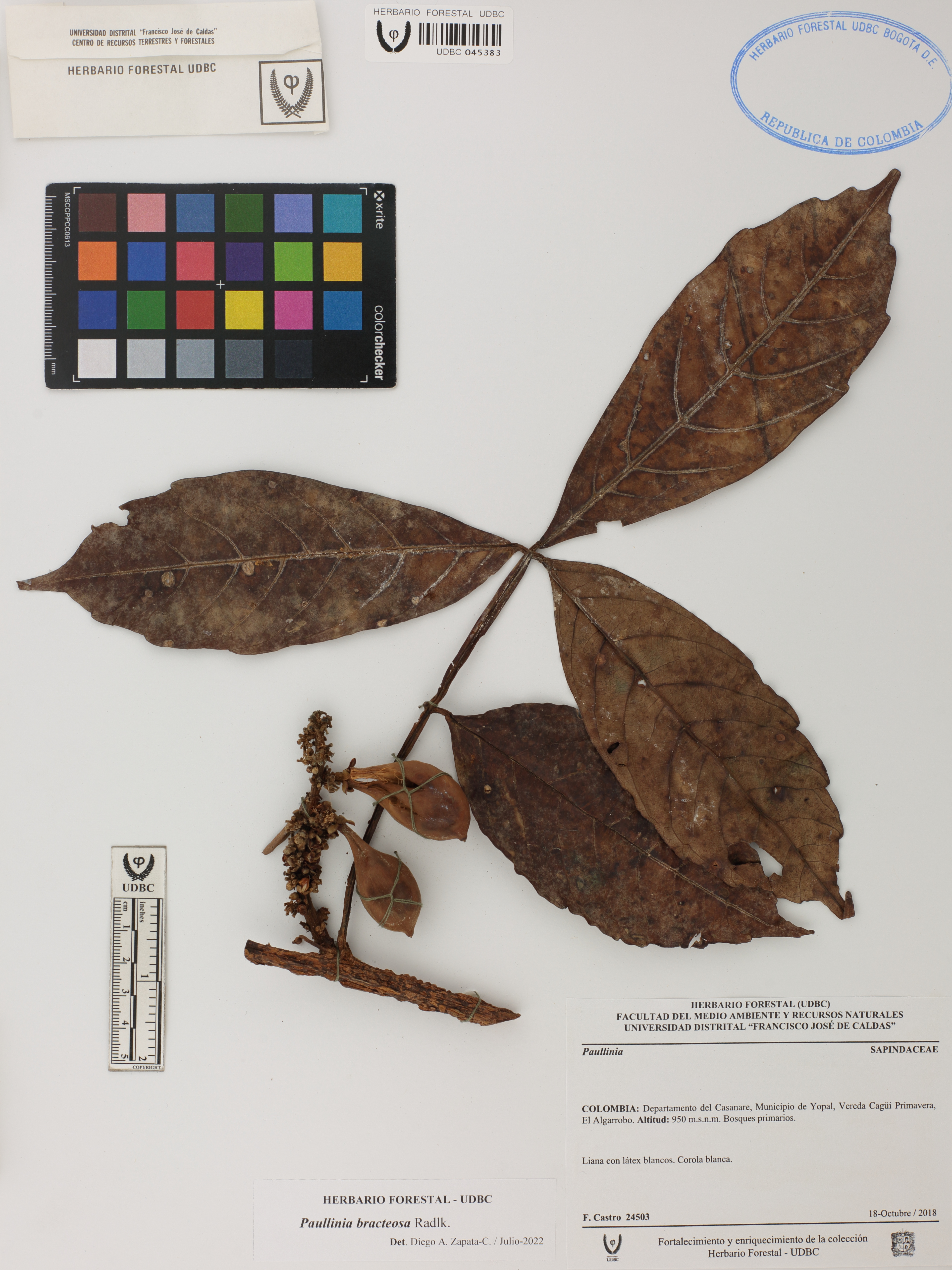 Fotografía del ejemplar Castro, F. 24503, determinado como Paullinia bracteosa en el año 2022