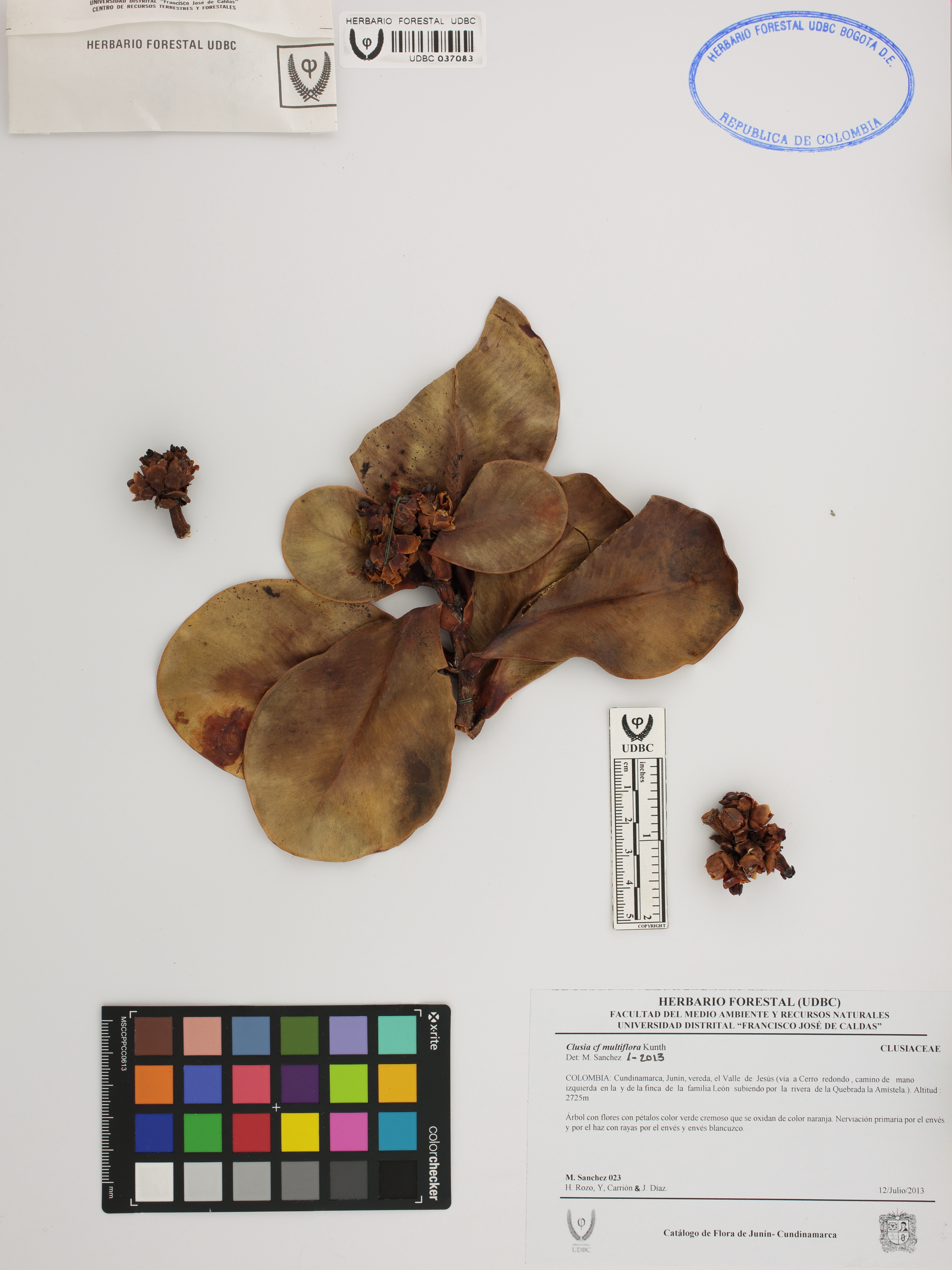 Fotografía del ejemplar Sánchez, M. 23, determinado como Clusia multiflora en el año 2013