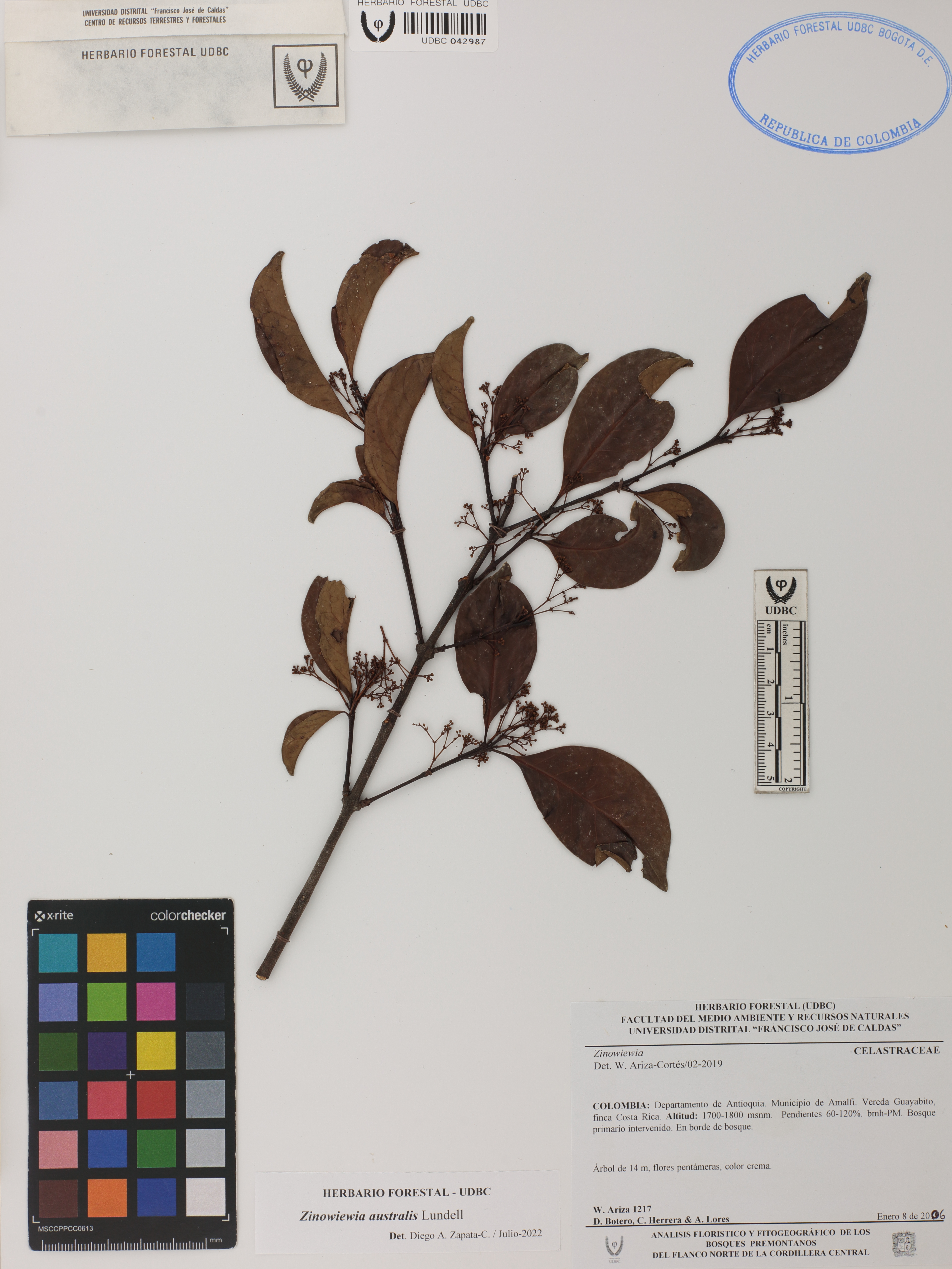 Fotografía del ejemplar Ariza, W. 1217, determinado como Zinowiewia australis en el año 2022