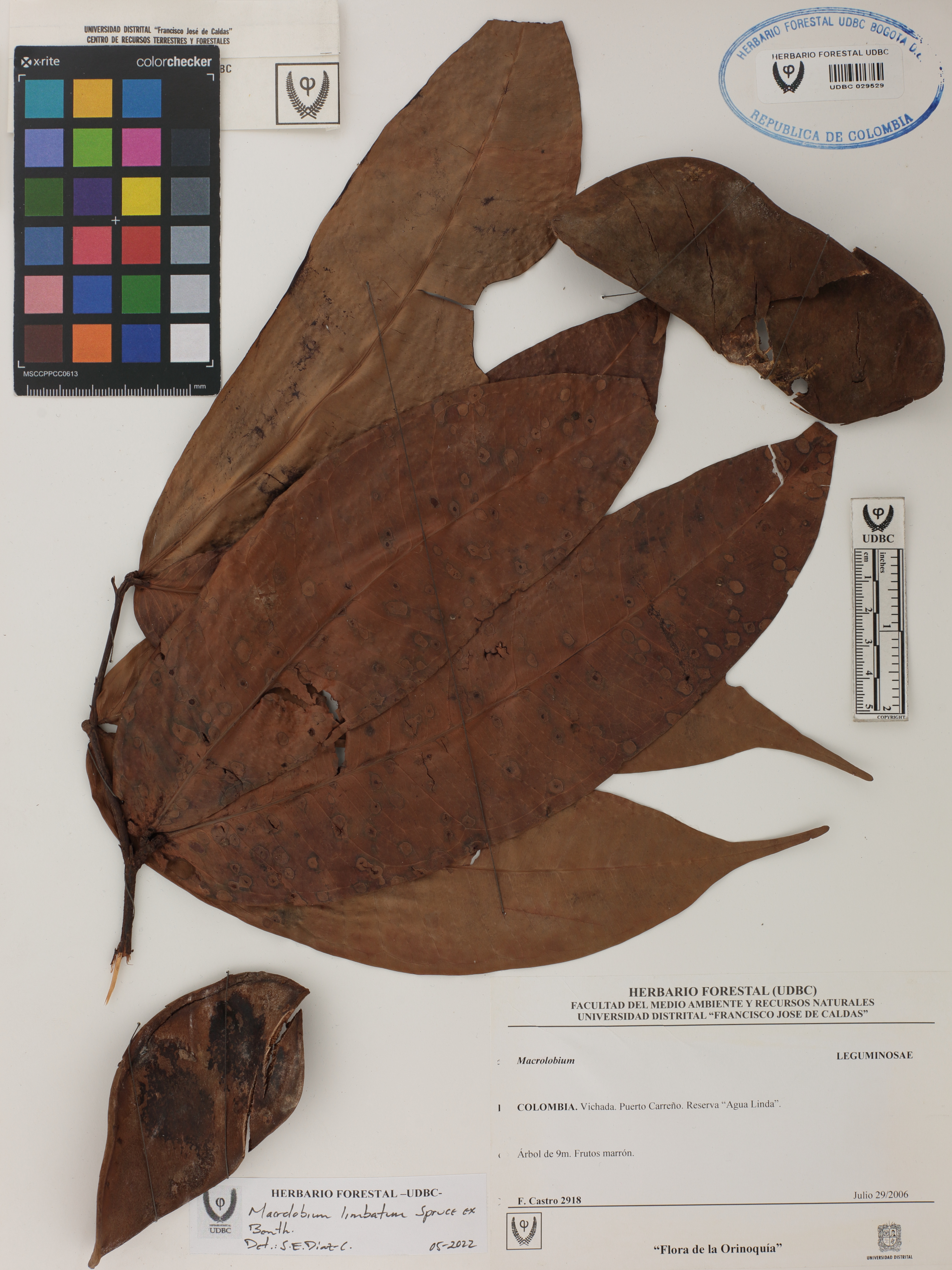 Fotografía del ejemplar Castro, F. 2918, determinado como Macrolobium limbatum en el año 2022