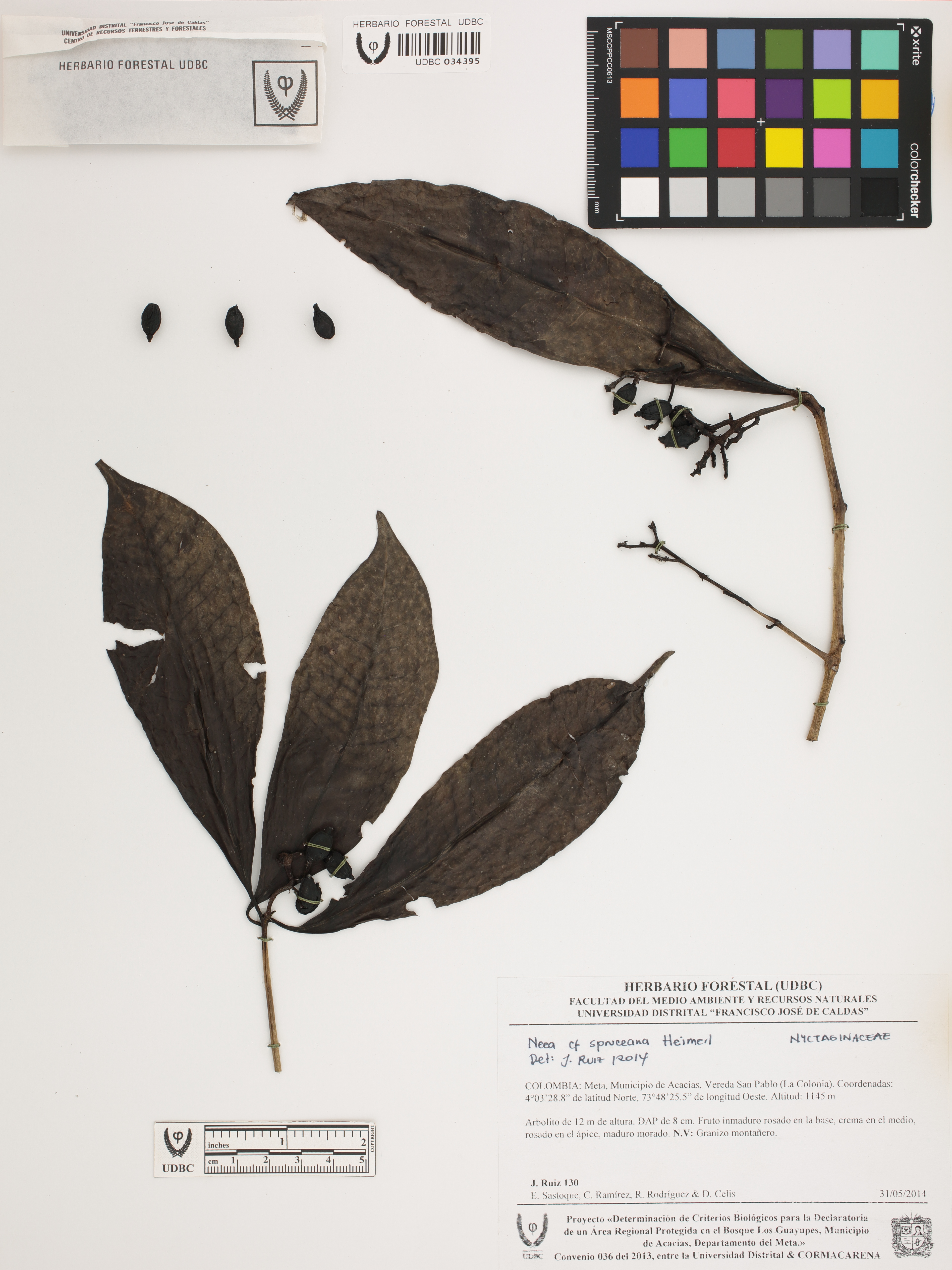 Fotografía del ejemplar Ruiz, J. 130, determinado como Neea spruceana en el año 2014