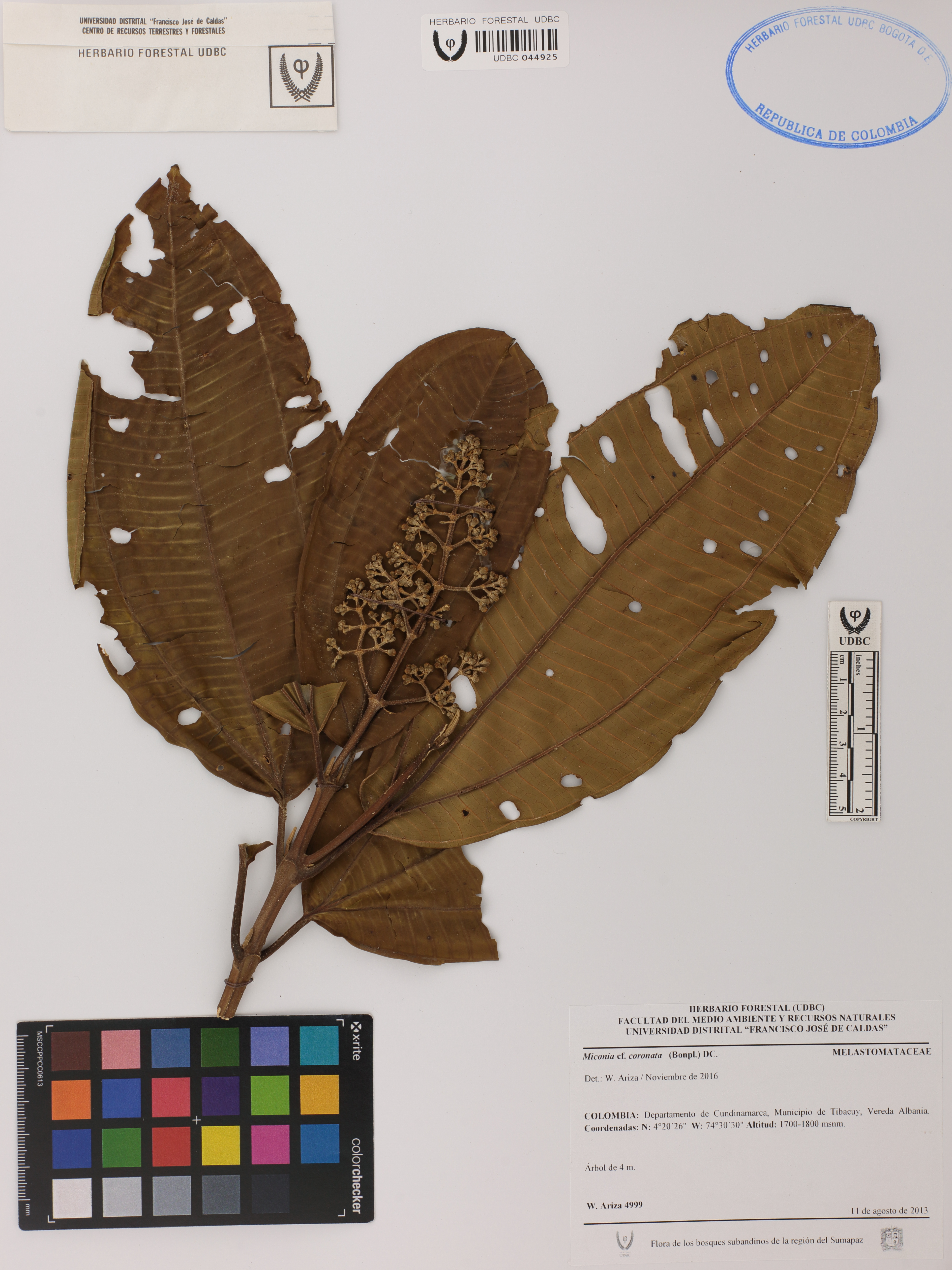 | dc.description | Fotografía del ejemplar Ariza-Cortés, W. 4999, determinado como Miconia coronata en el año 2016 | |