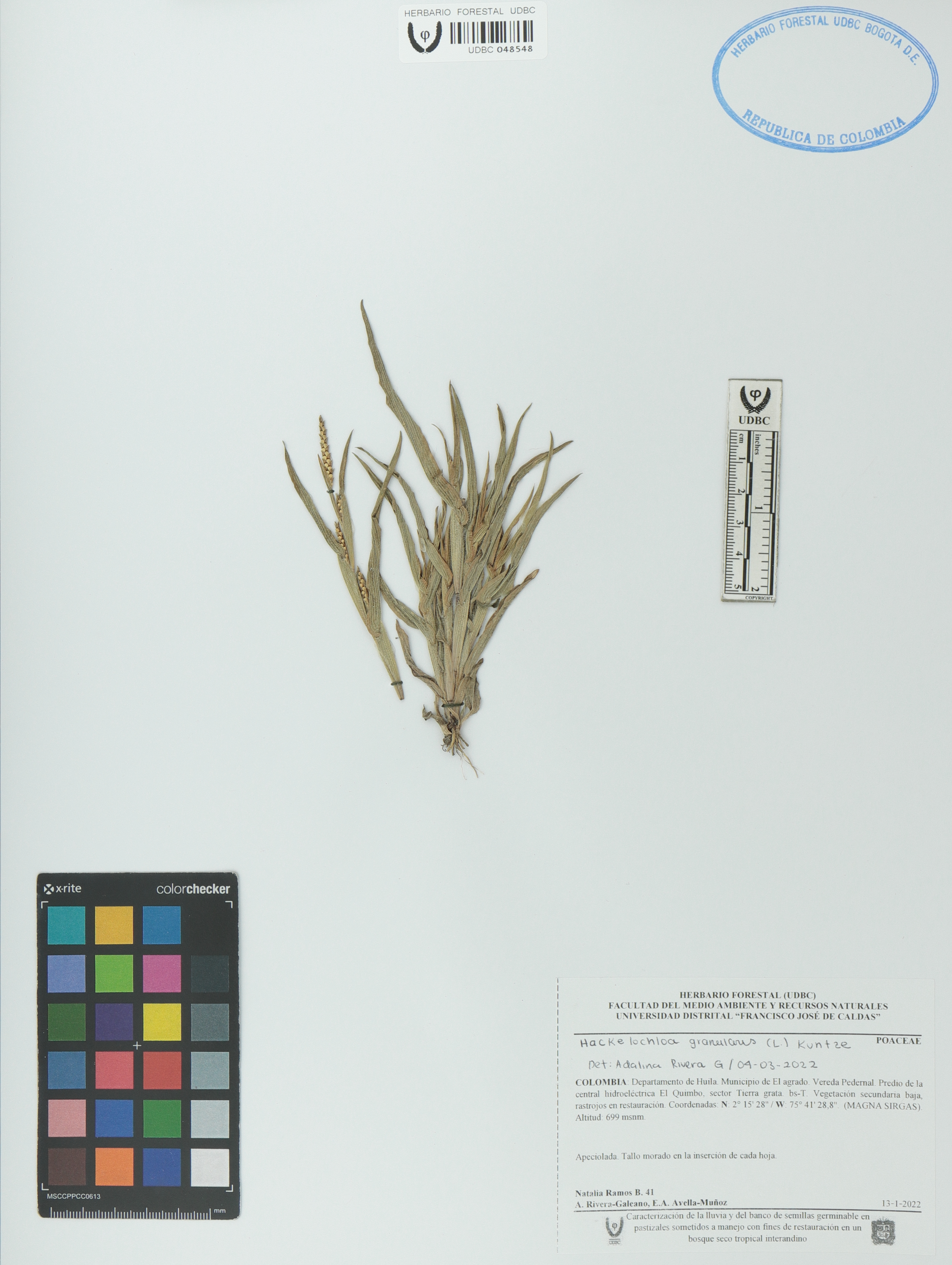 Fotografía del ejemplar Ramos-B., Natalia 41, determinado como Hackelochloa granularis en el año 2022