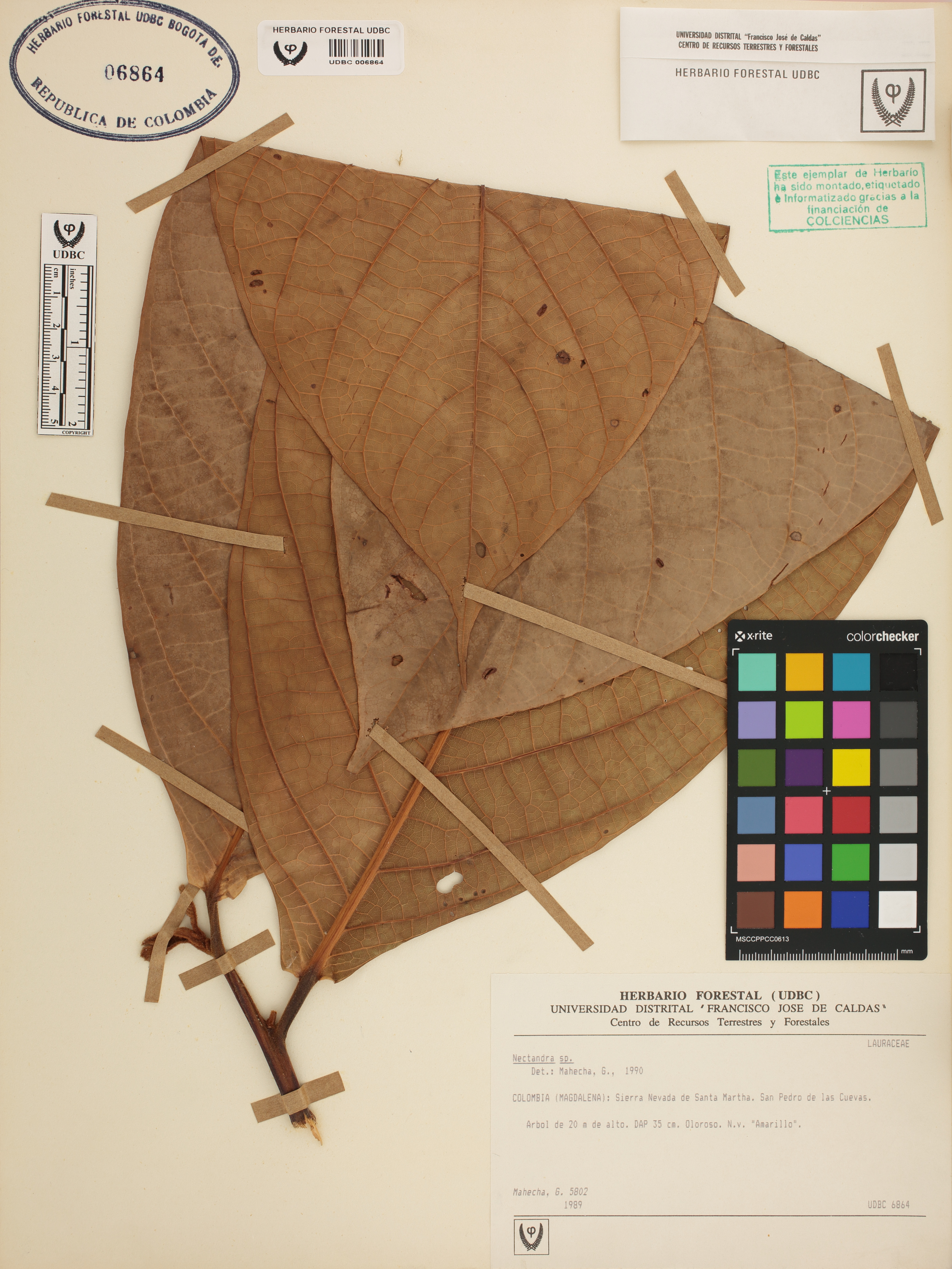 Fotografía del ejemplar Mahecha, G. 5802, determinado como Nectandra sp. en el año 1990