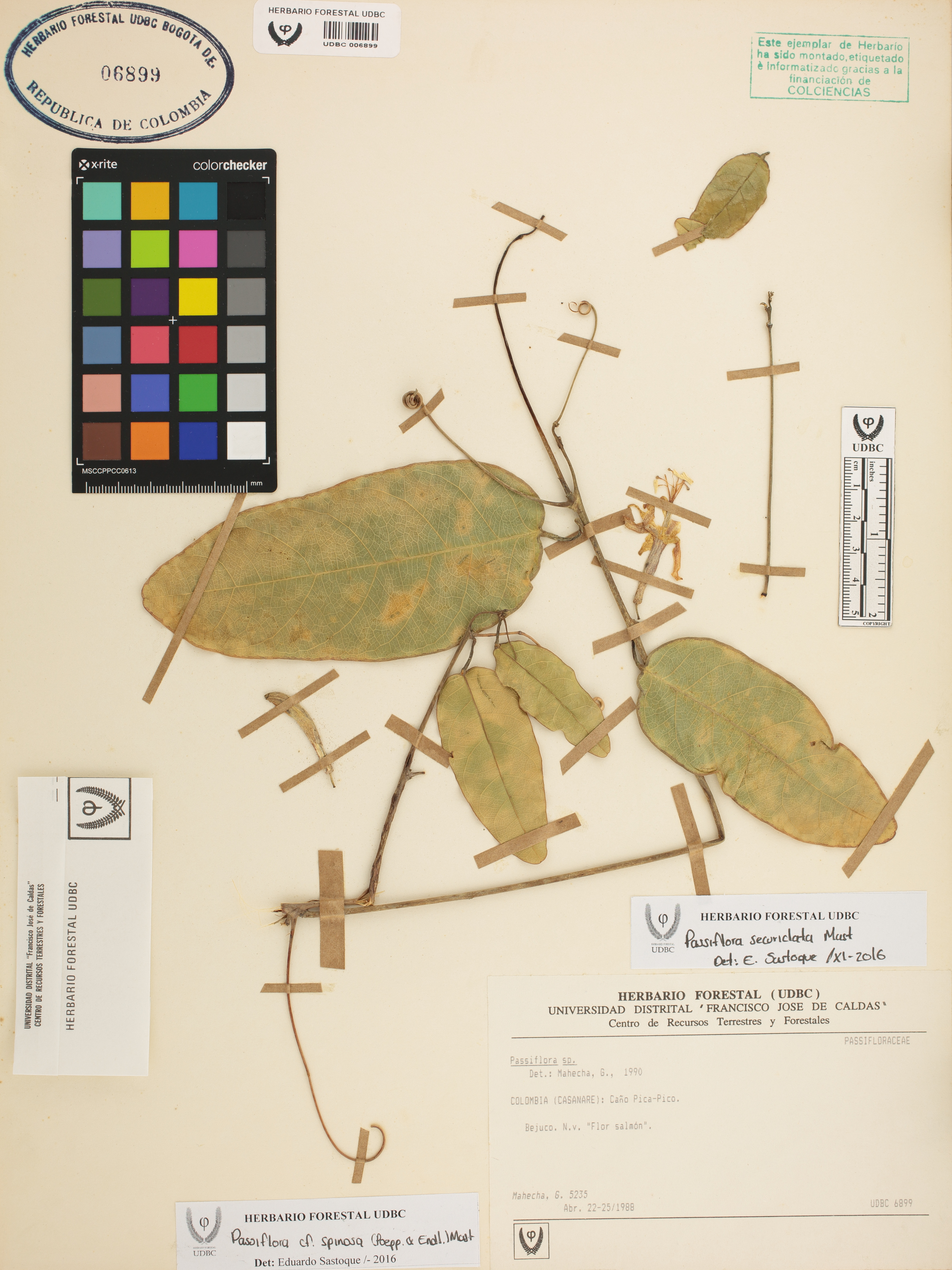 Fotografía del ejemplar Mahecha, G. 5235, determinado como Passiflora securiclata en el año 2016