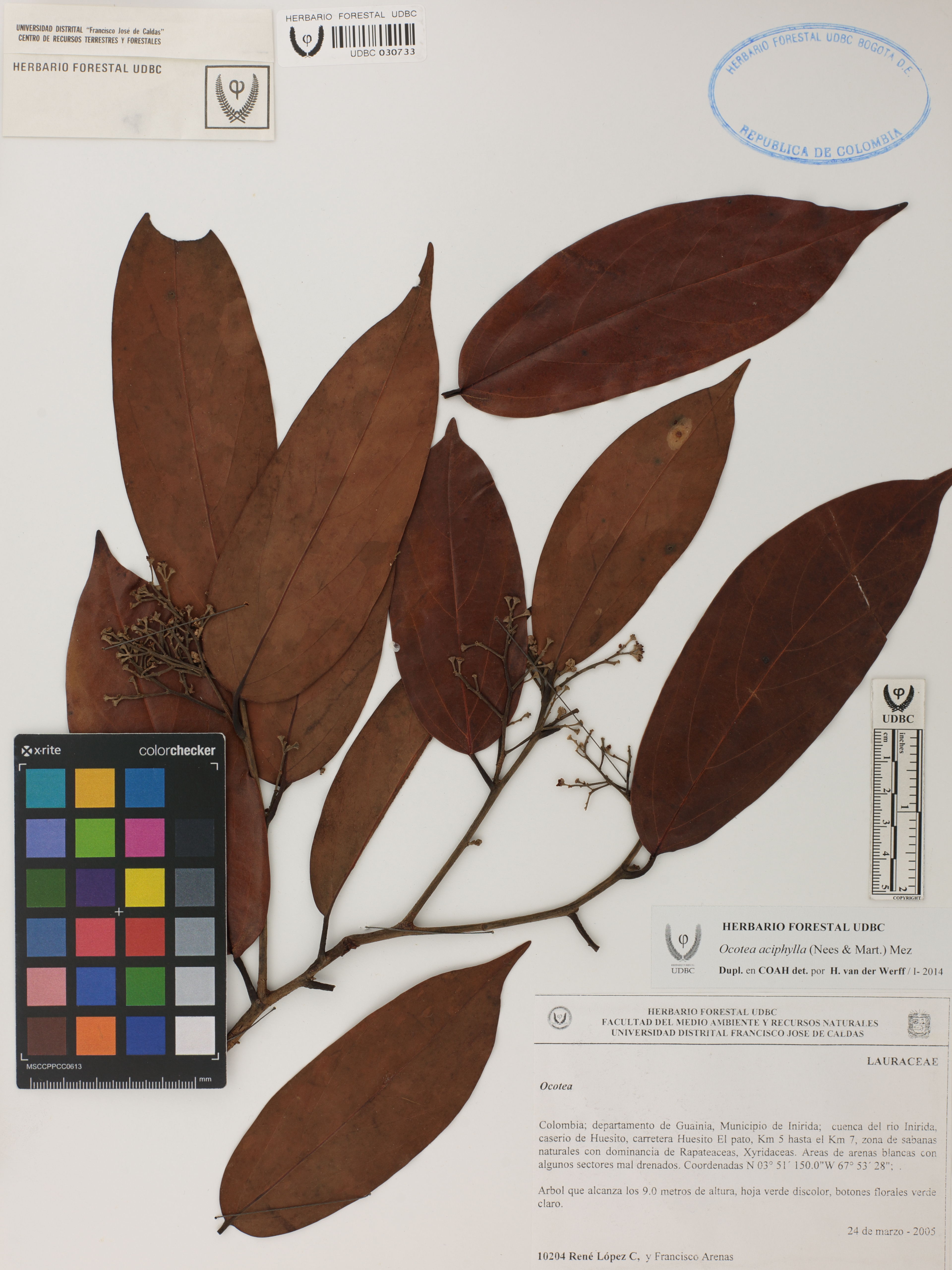 | dc.description | Fotografía del ejemplar López, R. 10204, determinado como Ocotea aciphylla en el año 2014 | |