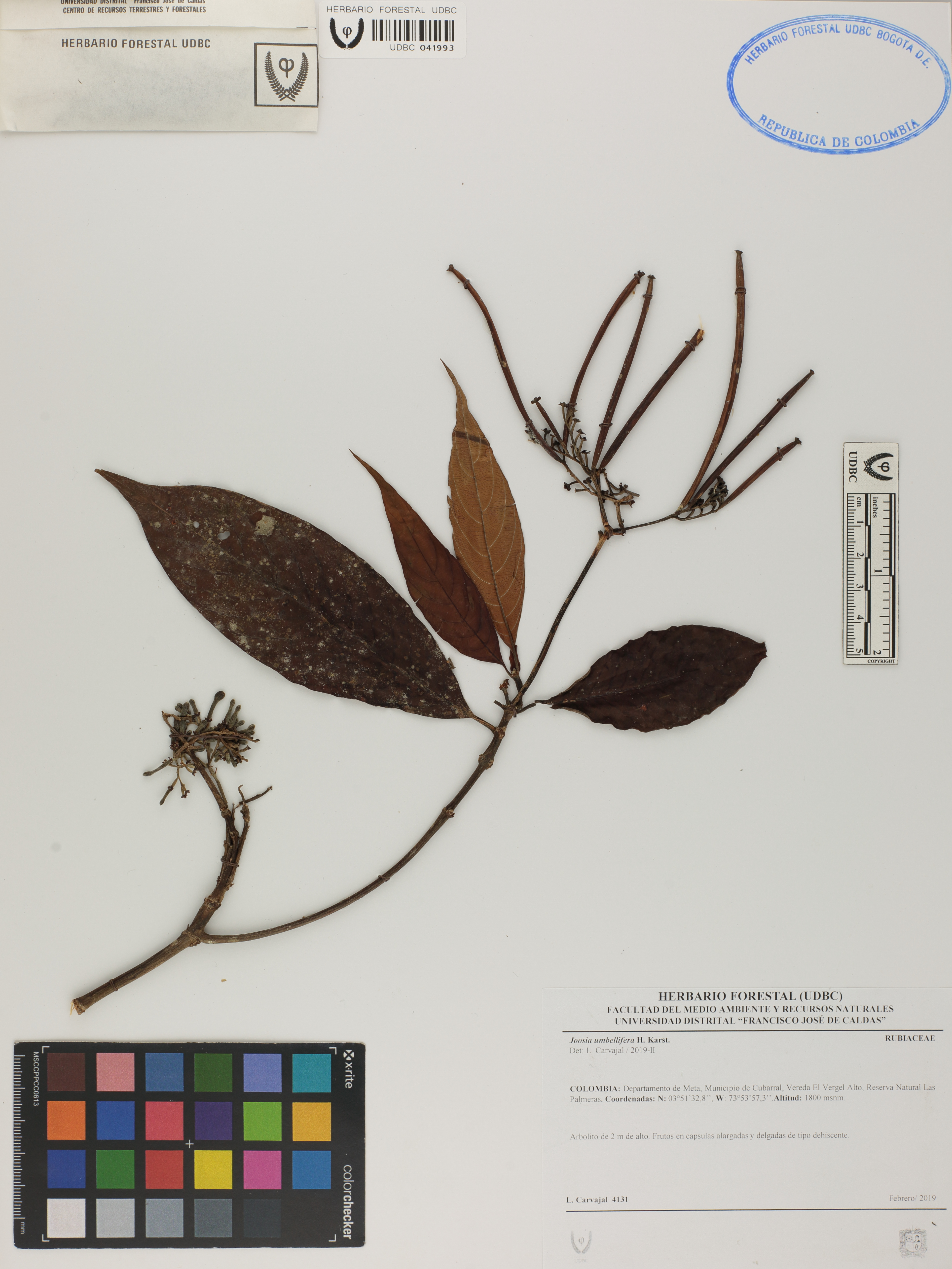 Fotografía del ejemplar Carvajal, L. 4131, determinado como Joosia umbellifera en el año 2019