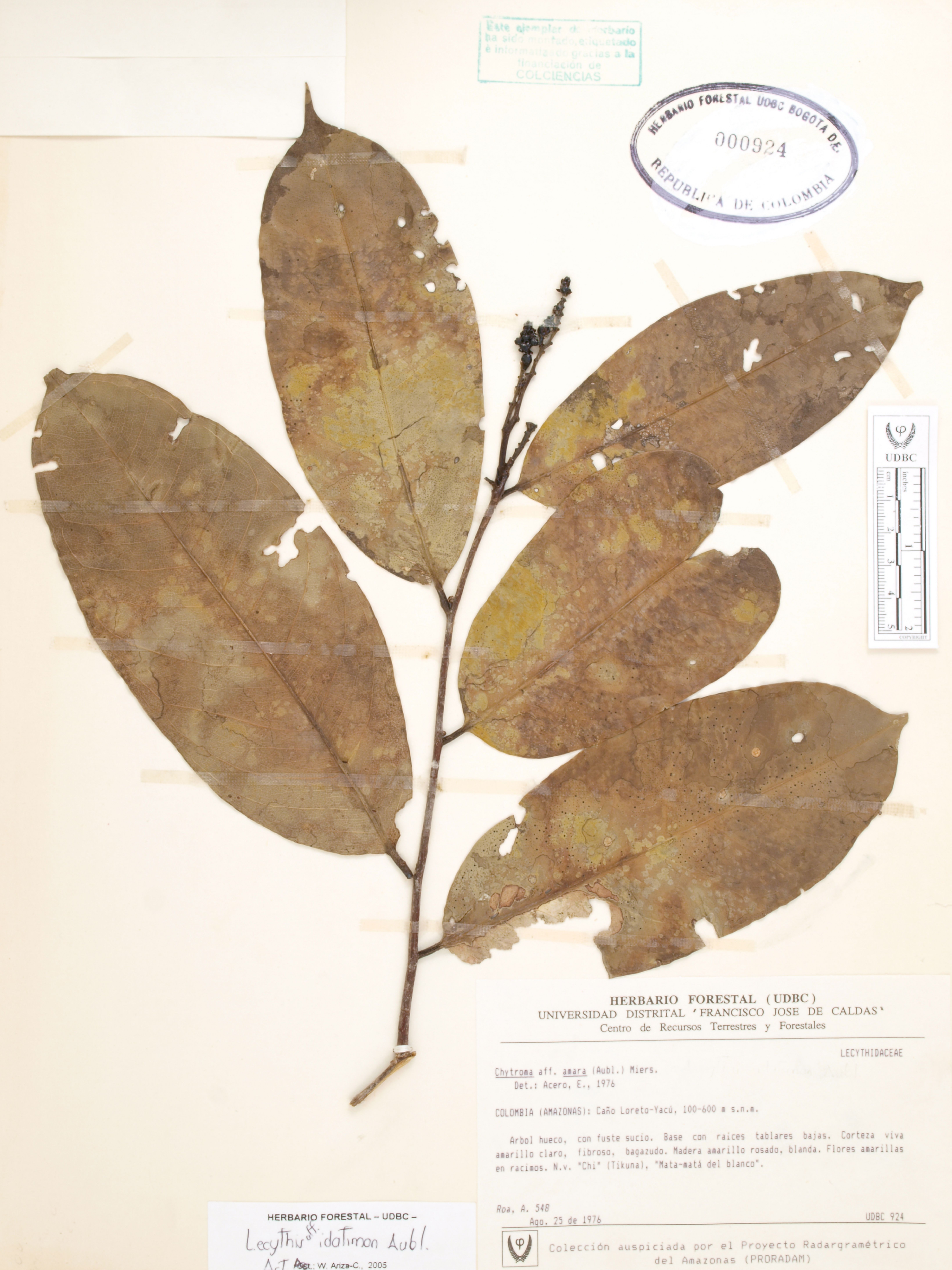 Fotografía del ejemplar Roa, A. 548, determinado como Lecythis idatimon en el año 2004