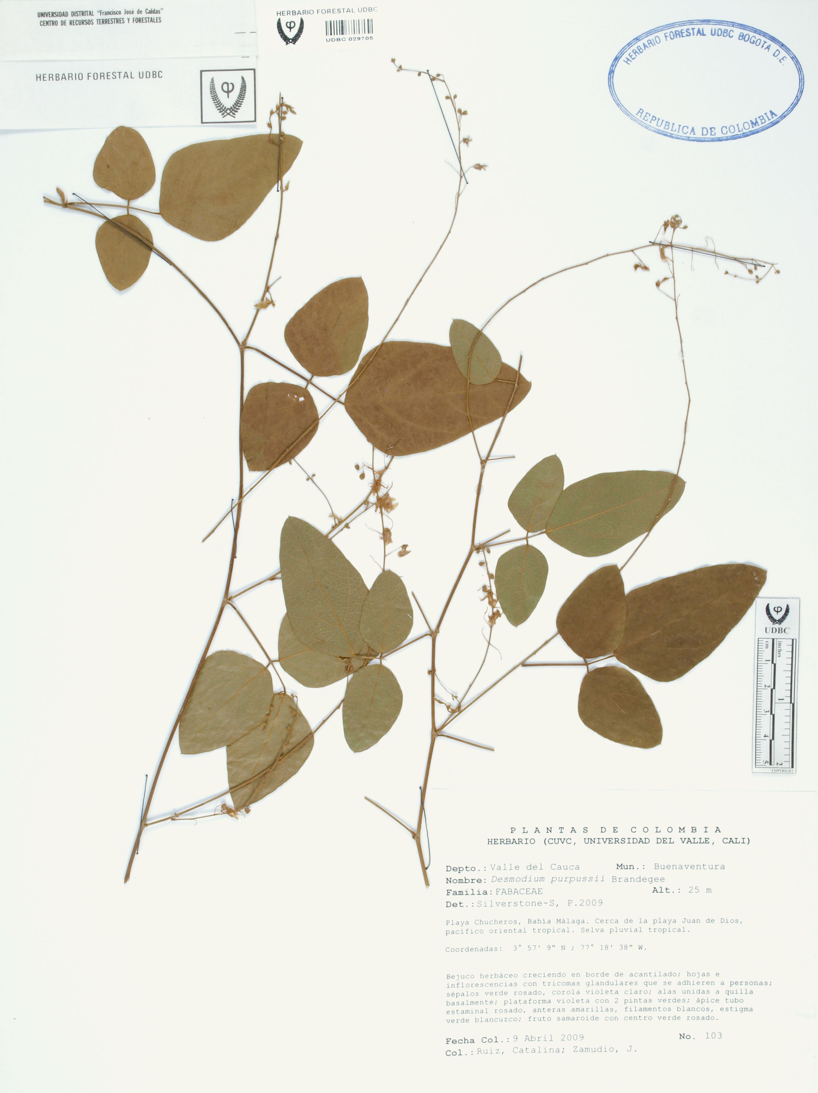 | dc.description | Fotografía del ejemplar Ruiz, C. 103, determinado como Desmodium purpusii en el año 2009 | |