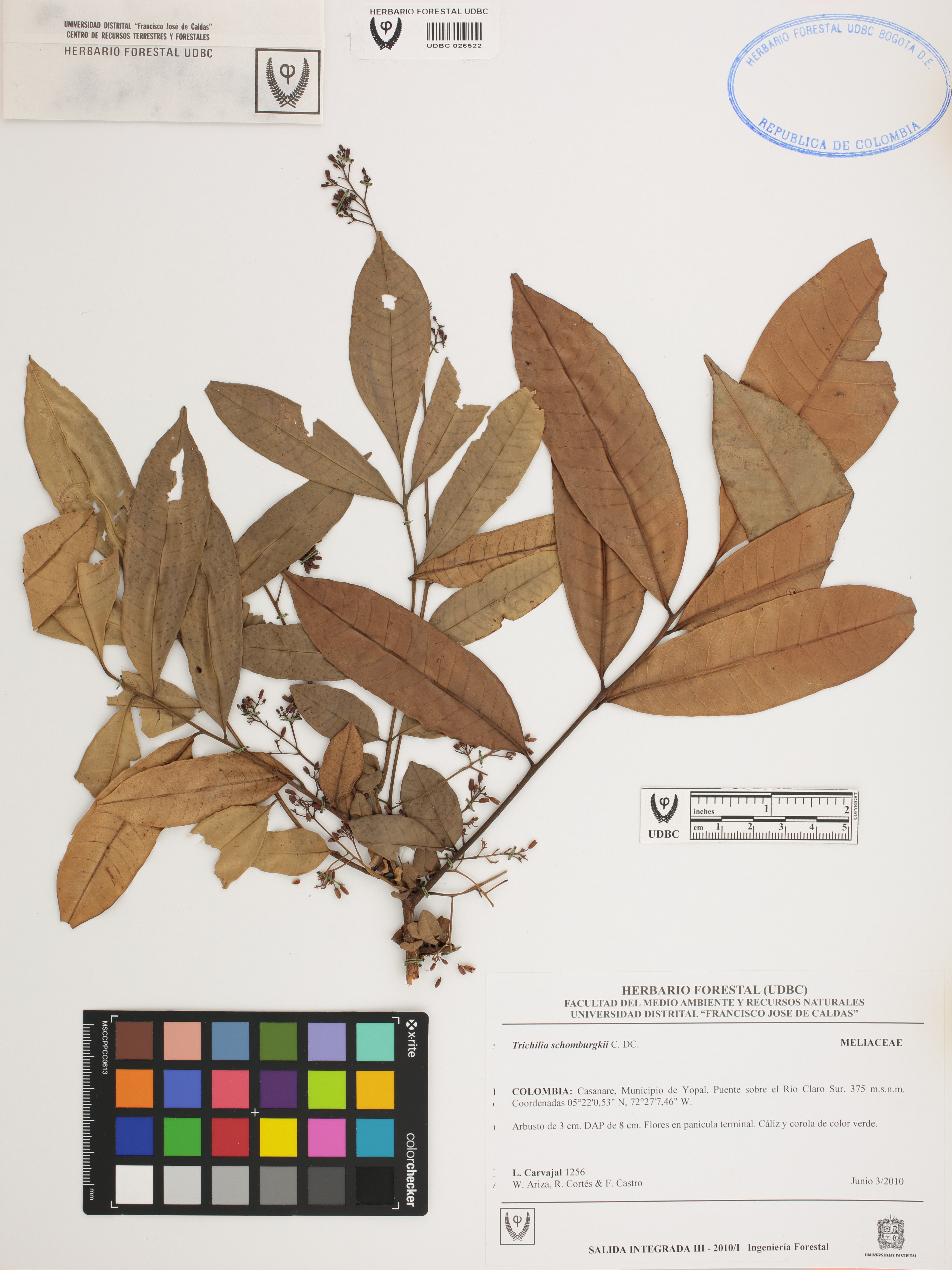 Fotografía del ejemplar Carvajal, L. 1256, determinado como Trichilia schomburgkii