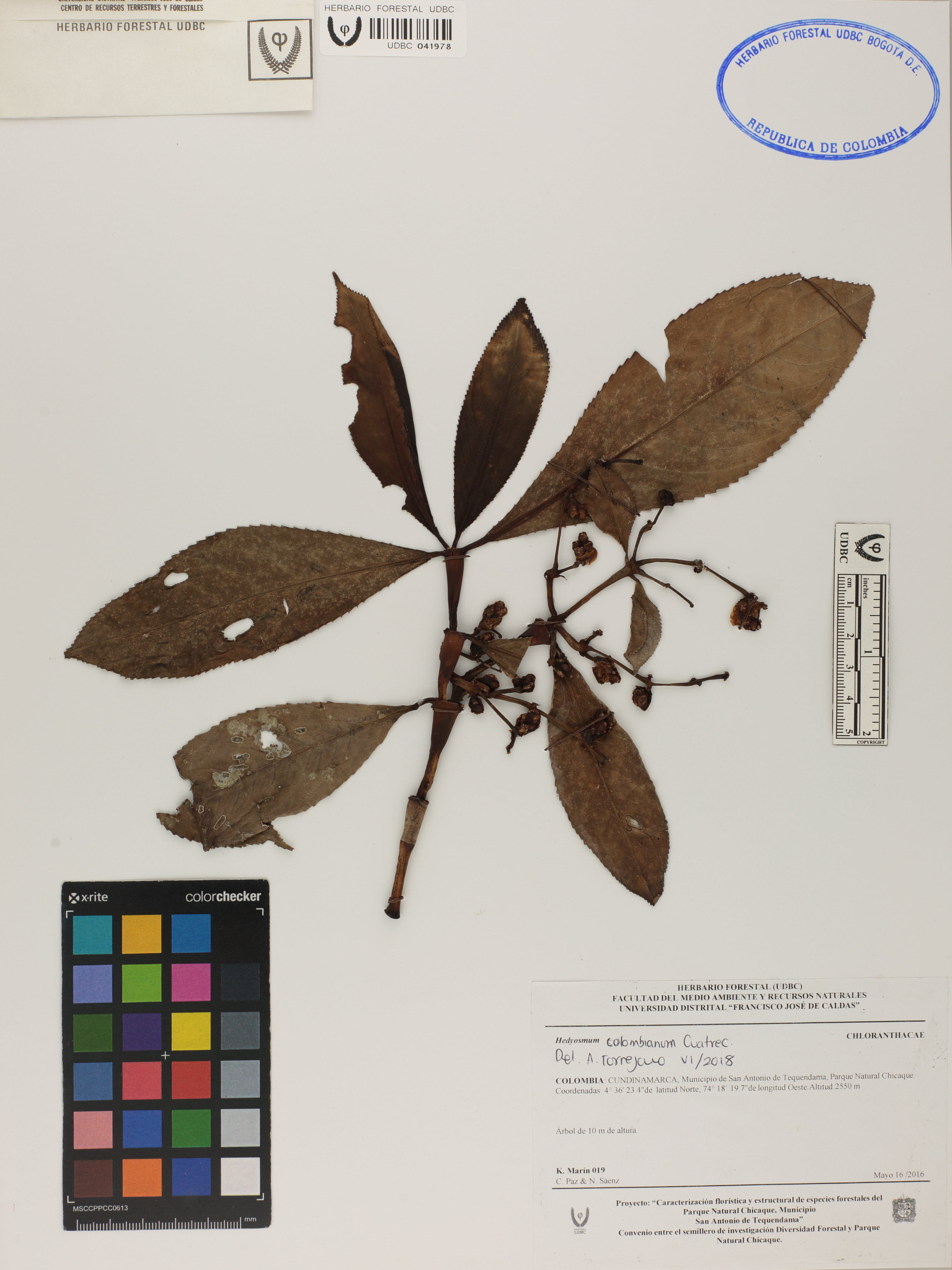 Fotografía del ejemplar Marín, K. 19, determinado como Hedyosmum colombianum en el año 2018