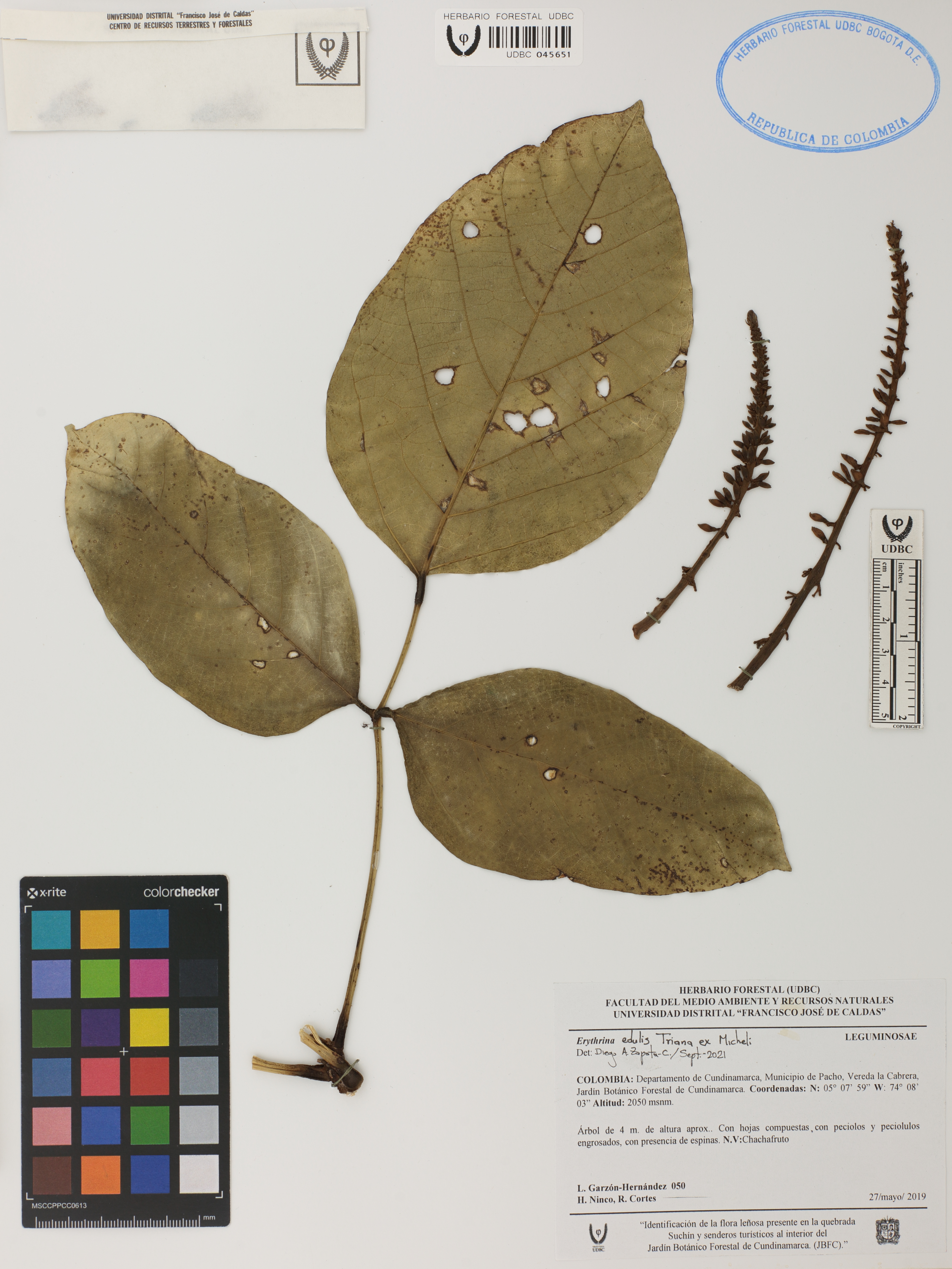 | dc.description | Fotografía del ejemplar Garzón-Hernández, L. 50, determinado como Erythrina edulis en el año 2021 | |