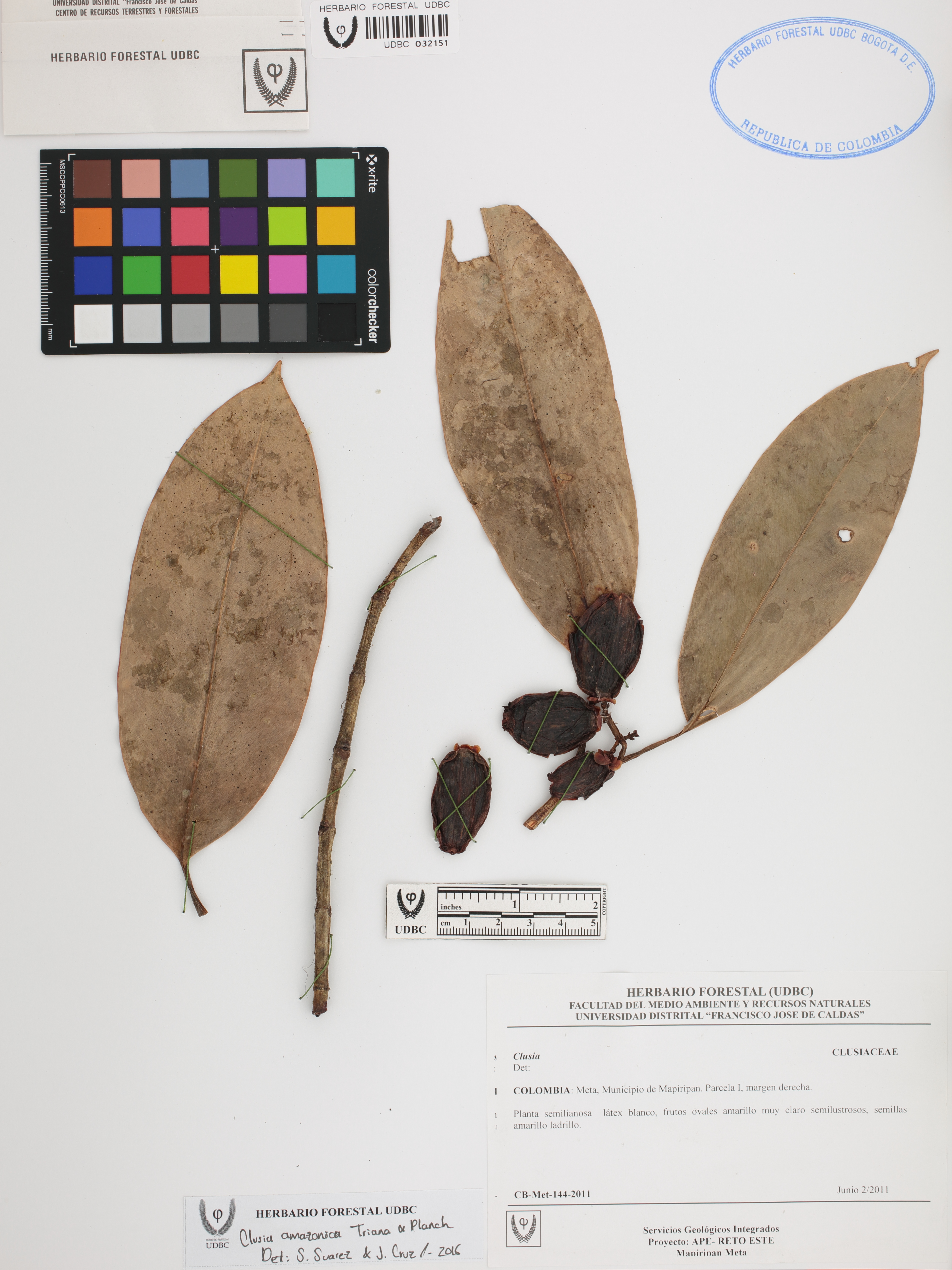 Fotografía del ejemplar SD 144, determinado como Clusia amazonica en el año 2016