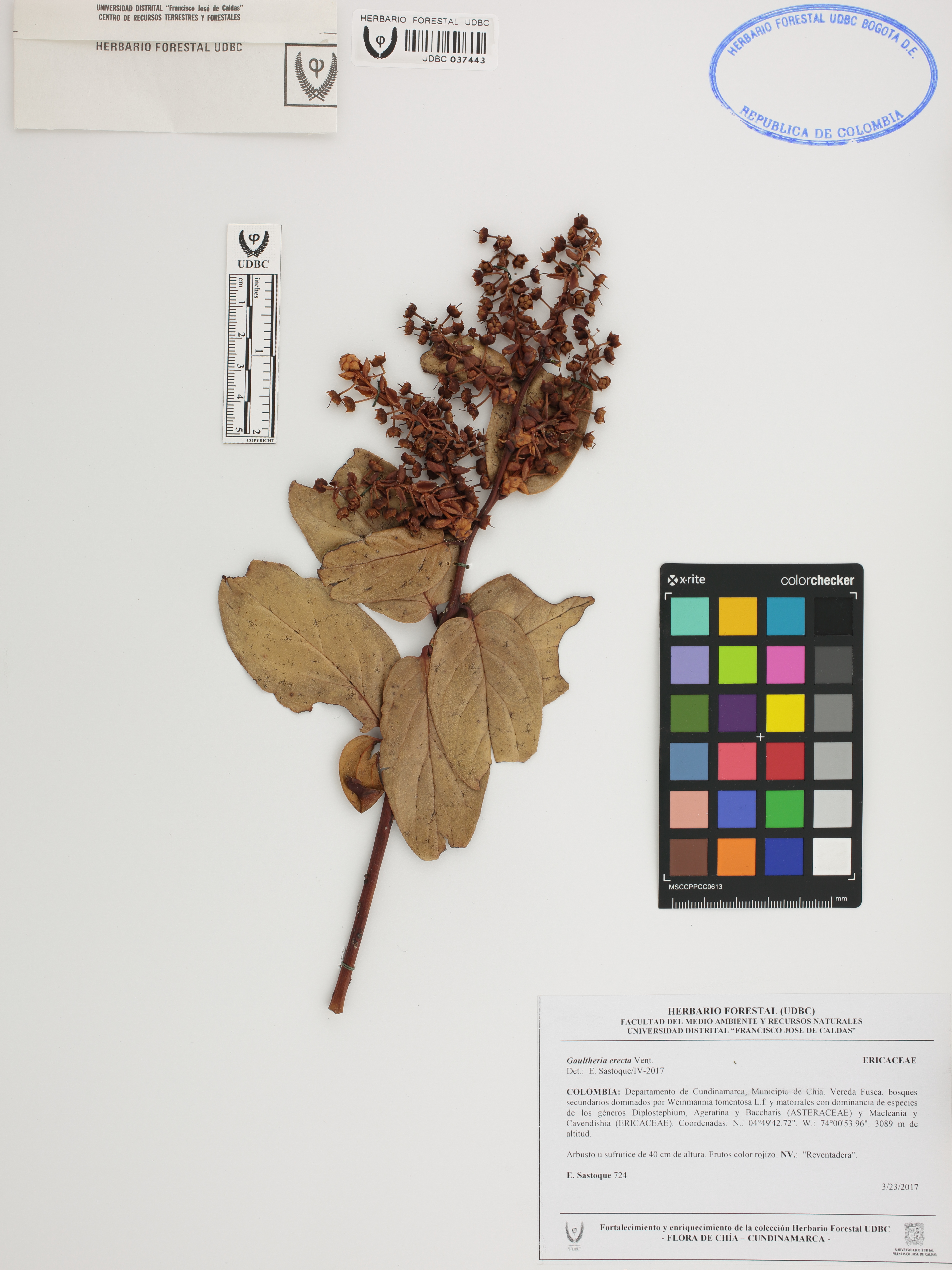 Fotografía del ejemplar Sastoque, E. 724, determinado como Gaultheria erecta en el año 2017