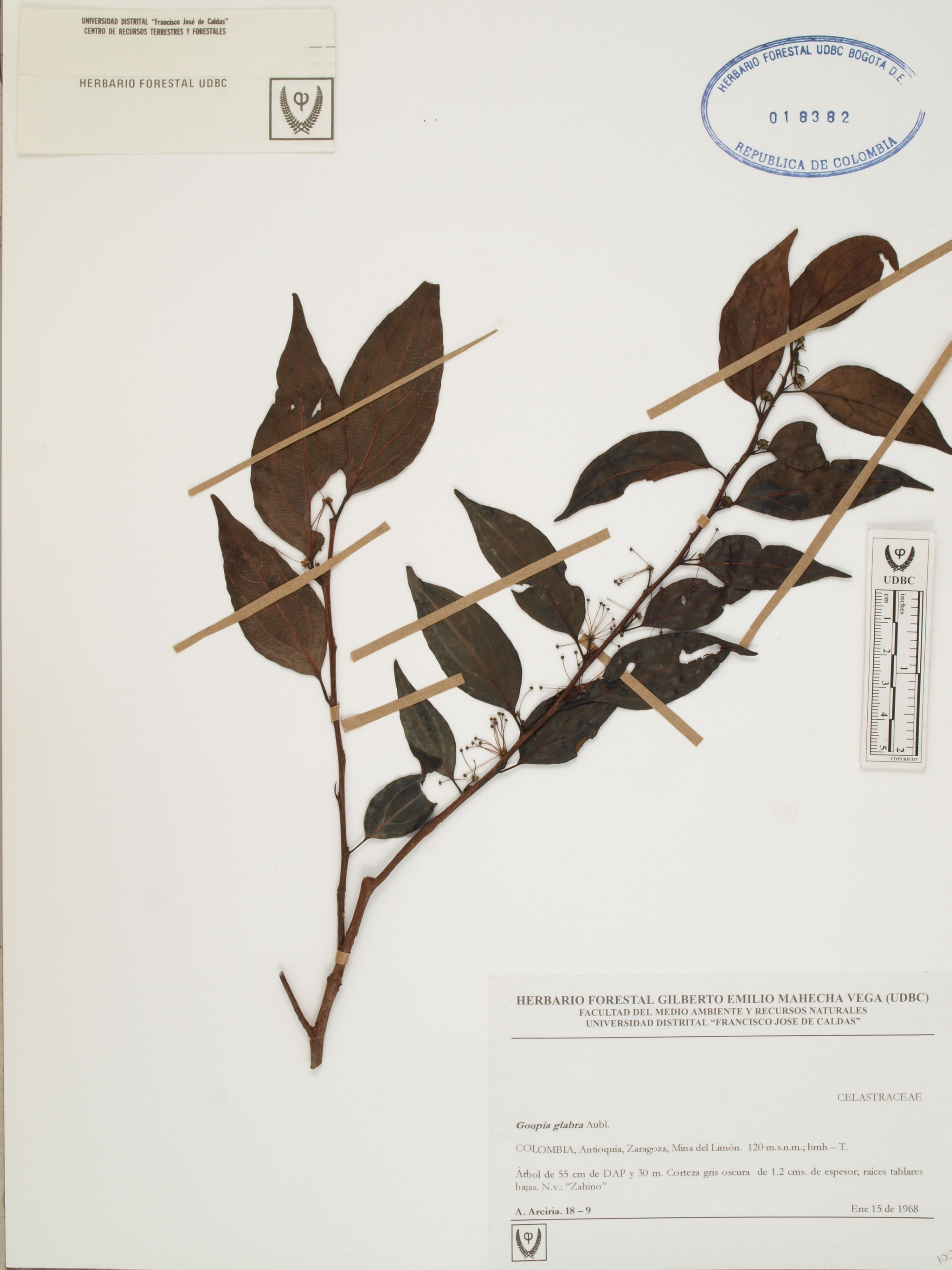 Fotografía del ejemplar Arciria, A. 18, determinado como Goupia glabra